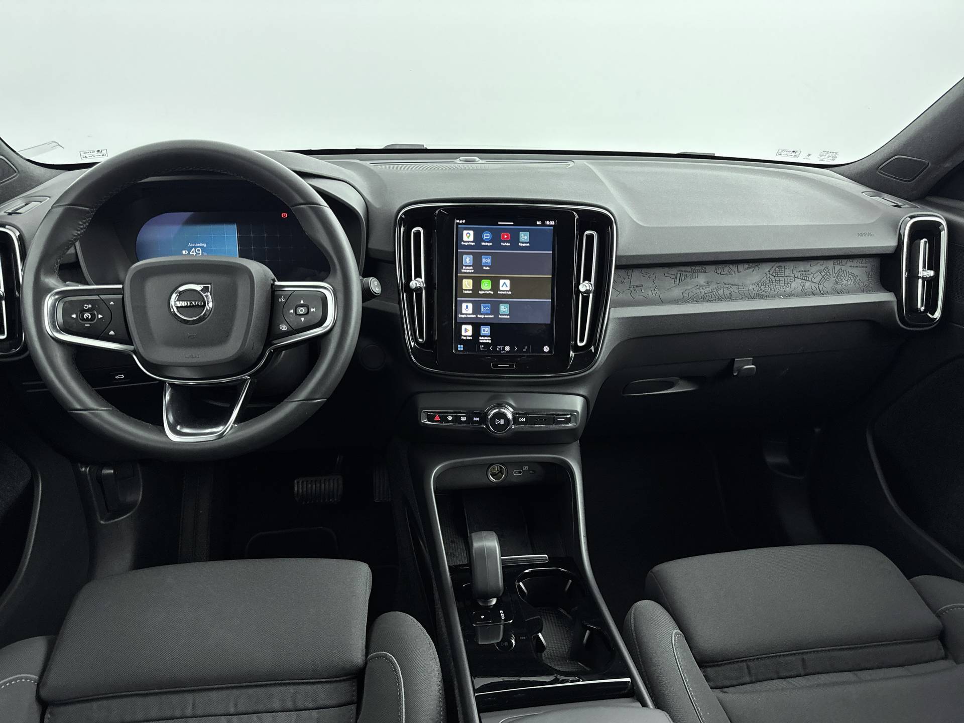 Volvo heeft een uitstekende reputatie opgebouwd als het gaat om betrouwbare elektrische auto's. Kiest u voor deze XC40, dan kiest u voor degelijke techniek van topklasse. De modernste techniek is toegepast om u in alle rust en stilte van de rit te laten genieten. Daarbij zult u zien dat de tijd om de accu's op te laden enorm meevalt, en dankzij de flinke actieradius hoeft u dat ook niet zo vaak te doen. De krachtige motor geeft deze Volvo uitstekende prestaties. Doe maar luxe! Neem plaats in de verwarmbare voorstoelen en voel de weldaad in koude dagen. Nooit meer stramme spieren bij het uitstappen: daar zorgen de comfortstoelen voor! Wind, sneeuw, hagel, regen... allemaal vergeten als u het verwarmd stuurwiel in handen heeft. Ook 19 inch lichtmetalen velgen, LED koplampen, zwarte hemelbekleding, in delen neerklapbare achterbank, LED-achterlichten en verstelbare lendensteunen zijn aan boord. De standkachel is een ideale optie voor de koude maanden. U stapt altijd in een voorverwarmde auto en hoeft nooit meer ruiten te krabben. Het digitale dashboard zorgt voor een super functionele display van reisinformatie. Met de achteruitrijcamera ziet u wat er achter de auto gebeurt. Zo rijdt u moeiteloos achteruit. Adaptive cruise control houdt de ingestelde snelheid vast en houdt afstand tot het voertuig voor u. Connected Services zorgen ervoor dat de belangrijkste functies en data van de auto altijd en overal te checken zijn. Gewoon via de app op de smartphone. Extra opties op deze auto zijn: dashboard met spraakbediening, full map navigatiesysteem, achteropkomend verkeer waarschuwing, kruisend verkeer detectie, automatische airconditioning en draadloos opladen. Geavanceerde veiligheidssystemen kijken tijdens elke rit met u mee en schatten continu de risico's in. Een belangrijke bijdrage aan de veiligheid onderweg levert de verkeersbord-detectie. Ongemerkt buiten de rijstrook raken? Nee hoor, het Lane-keeping systeem waarschuwt en corrigeert. Het forward collision warning-systeem waarschuwt indien een botsing dreigt met een voorliggend of tegemoetkomend voertuig. Dankzij veiligheidsvoorzieningen als hill hold functie, brake assist, vermoeidheidsherkenning en bandenspanningcontrolesysteem, bent u steeds veilig onderweg. Klaar voor rijden anno nu? Kies dan voor elektrisch met deze Volvo XC40. Een proefrit overtuigt, dus bel nu voor een afspraak.