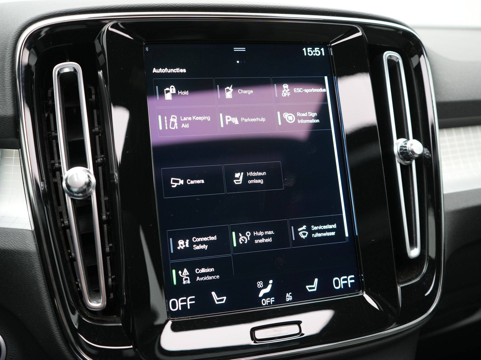 Deze Volvo is voorzien van verschillende intelligente veiligheidsvoorzieningen. Ze kijken tijdens het rijden als het ware met u mee, ze signaleren potentieel gevaarlijke situaties en in een aantal gevallen kunnen ze ook ingrijpen. In het instrumentarium laat de verkeersborddetectie de actuele verkeersborden zien. Ongemerkt buiten de rijstrook raken? Nee hoor, het Lane-keeping systeem waarschuwt en corrigeert. Veilig inhalen en invoegen wordt bevorderd door de actieve dodehoekdetectie. U bent mede dankzij forward collision warning system, hill hold functie, brake assist, vermoeidheidsherkenning en bandenspanningcontrolesysteem steeds veilig onderweg.