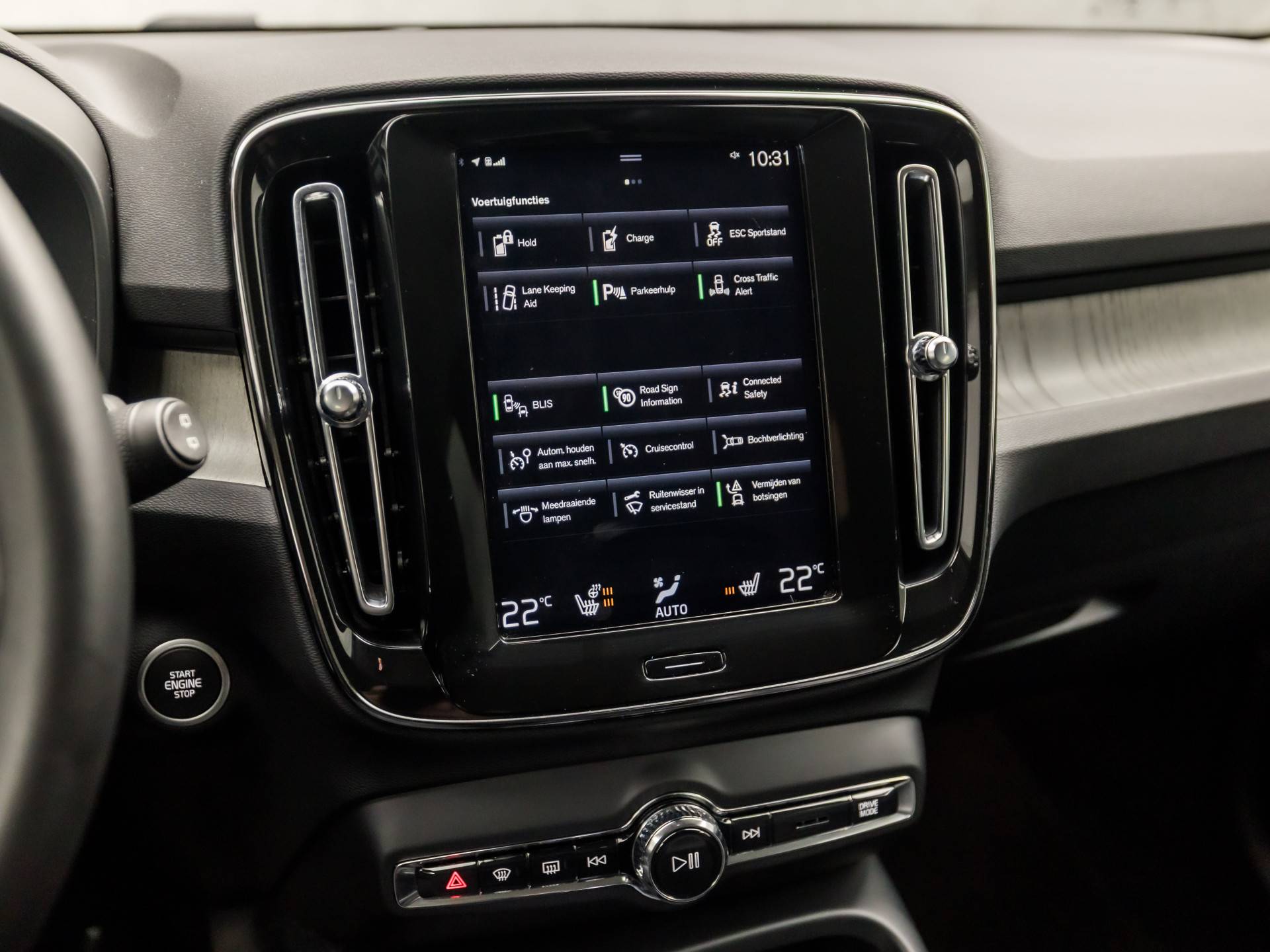 De standkachel verwarmt het interieur voor. Dat betekent meer comfort voor u en minder slijtage voor de auto. De slimme lay-out van het digitale dashboard zorgt voor een uitstekend overzicht onderweg. Veilig en comfortabel rijden wordt nog eens versterkt door Connected Services, zodat u diverse vitale functies van de auto altijd kunt checken in de app. Het audio-installatiesysteem met DAB-ontvangst en het navigatiesysteem met harde schijf bedient u veilig met knoppen op het stuurwiel of met gesproken commando's. Een onopgemerkte tegenligger bij het afslaan wordt automatisch 'gezien' door de ingebouwde kruisend verkeer detectie. Het systeem waarschuwt dan voor een mogelijke aanrijding. U bent in deze Volvo ook voorzien van WIFI-hotspot, achteropkomend verkeer waarschuwing, automatische airconditioning, parkeersensoren voor en achter, regensensor en cruise control.
