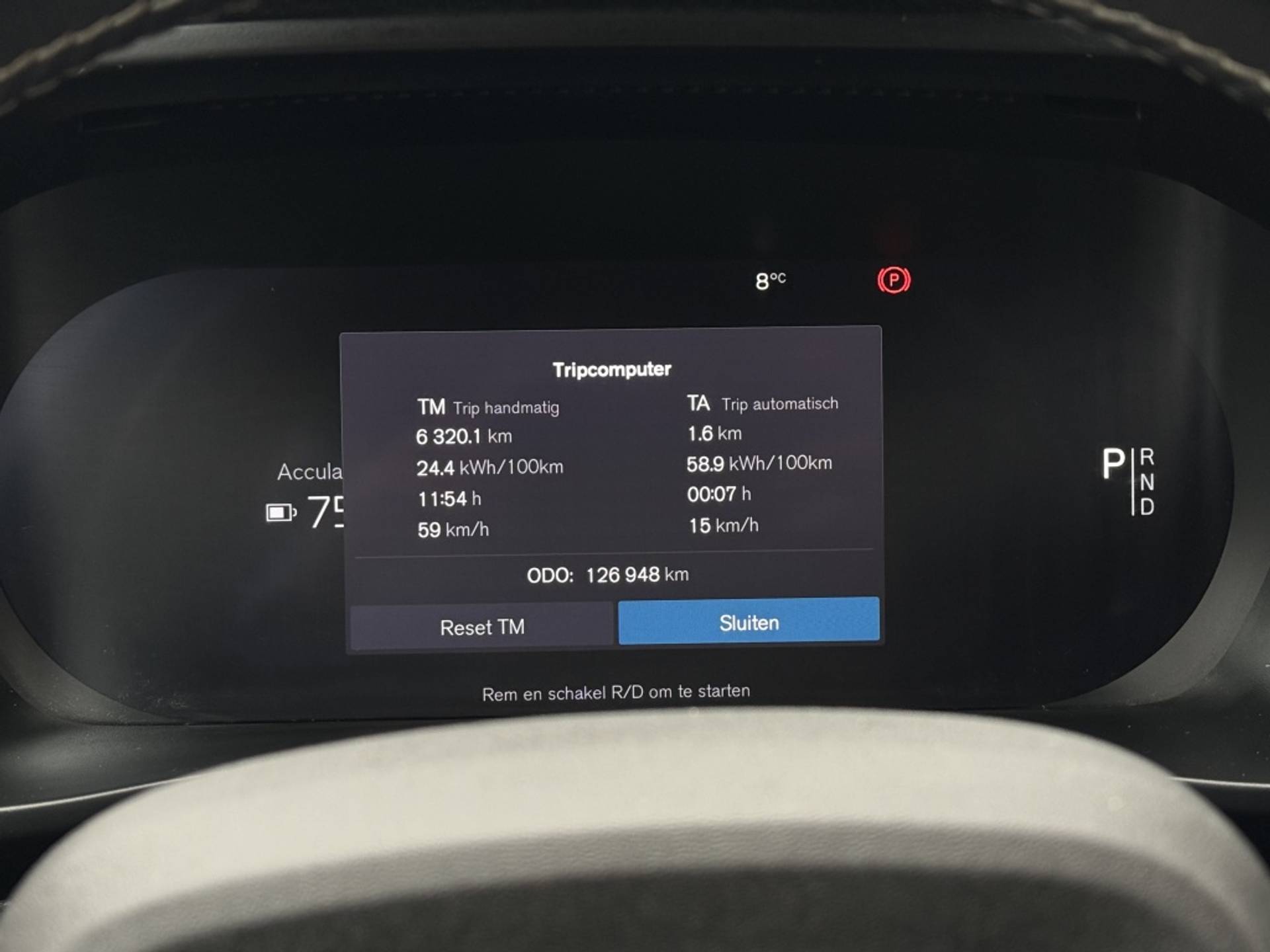 Bruikbare accucapaciteit geschat: 74.1 kWh