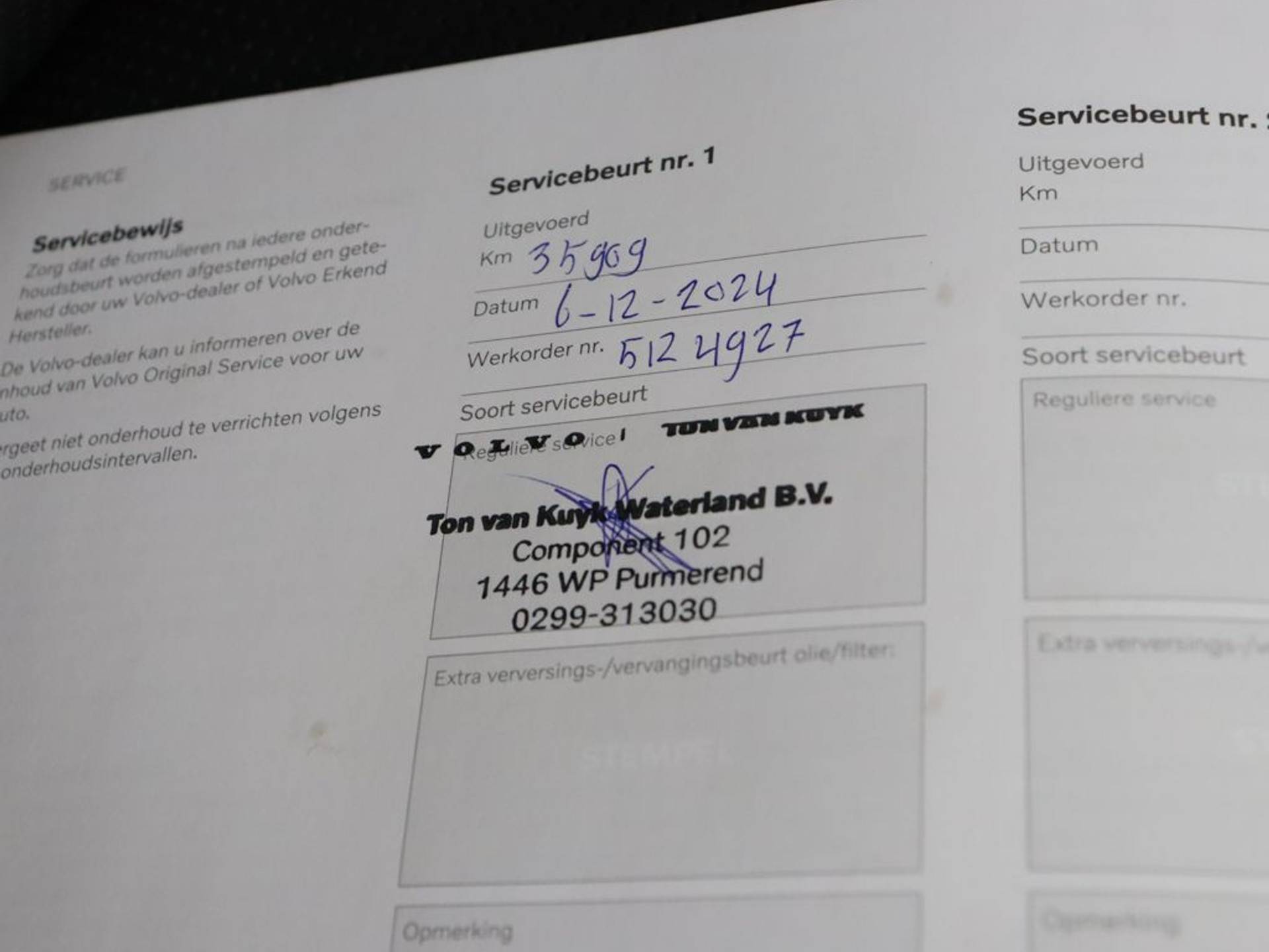 ✓ APK bij aflevering: J