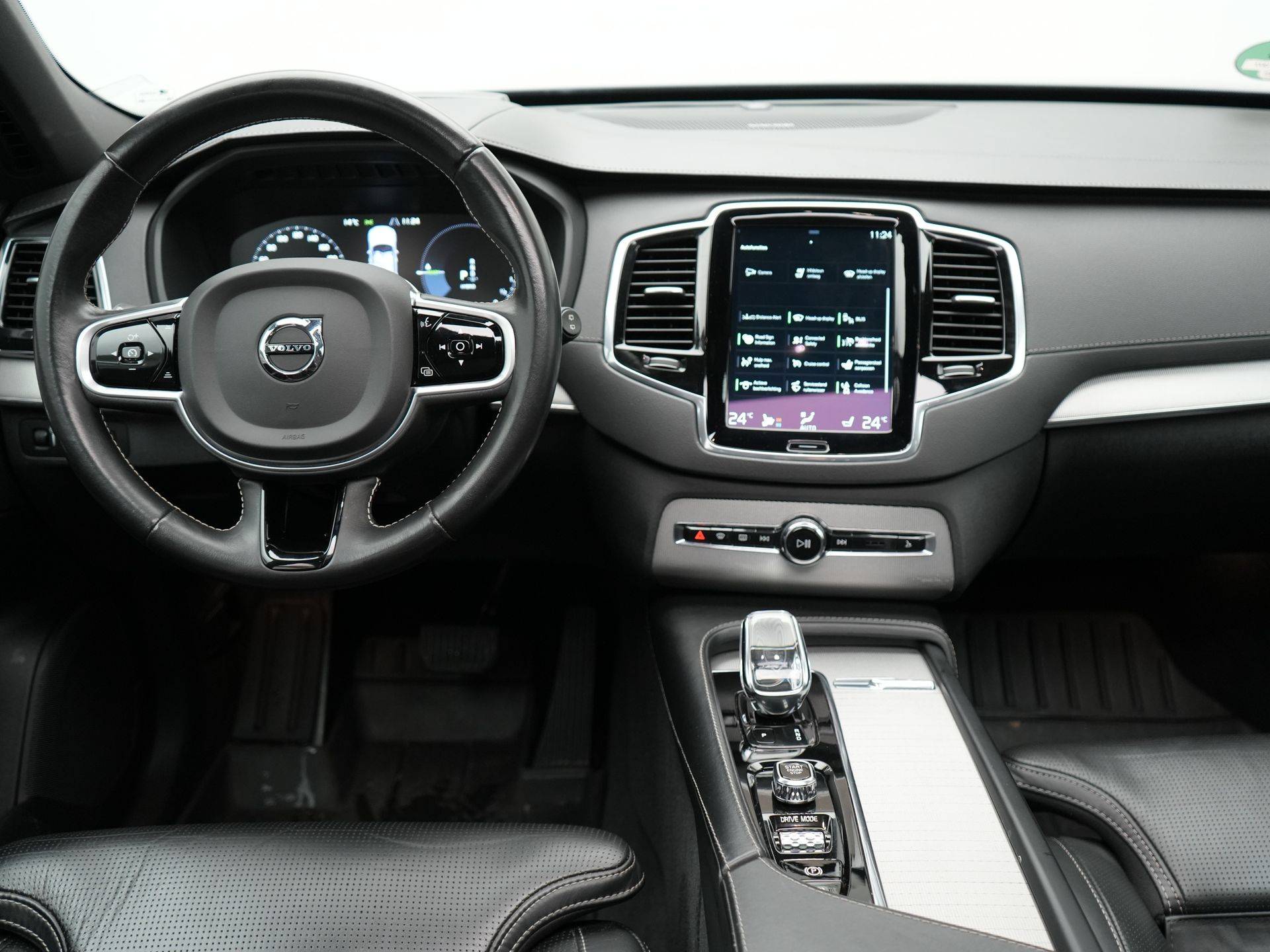 Met zijn ruimte en zijn prestaties is dit de auto die bij u past. Minder vaak tanken? Dat gaat lukken, dankzij de hybride motor die zowel op brandstof als elektriciteit werkt. Een mooie combi, die merkbaar is in de portemonnee. Het lederen interieur ademt luxe, en het zit uiteraard fantastisch. 's Winters komen de verwarmbare voorstoelen heerlijk van pas. En ze zijn ook nog eens voorzien van massagefunctie. Zit u goed? De stoelen zijn eenvoudig instelbaar dankzij de elektrische bediening met geheugen. Van binnen lijkt het allemaal uitermate ruim dankzij de vrije inval van daglicht via het elektrisch bediende glazen panoramadak. De elektrisch bedienbare achterklep opent met een druk op de knop. De derde zitrij biedt u de ruimte om meer mensen te vervoeren tijdens uitstapjes. In deze Volvo profiteert u onder andere ook van: 20 inch lichtmetalen velgen, LED koplampen, donker getint glas achter en verstelbare lendensteunen.