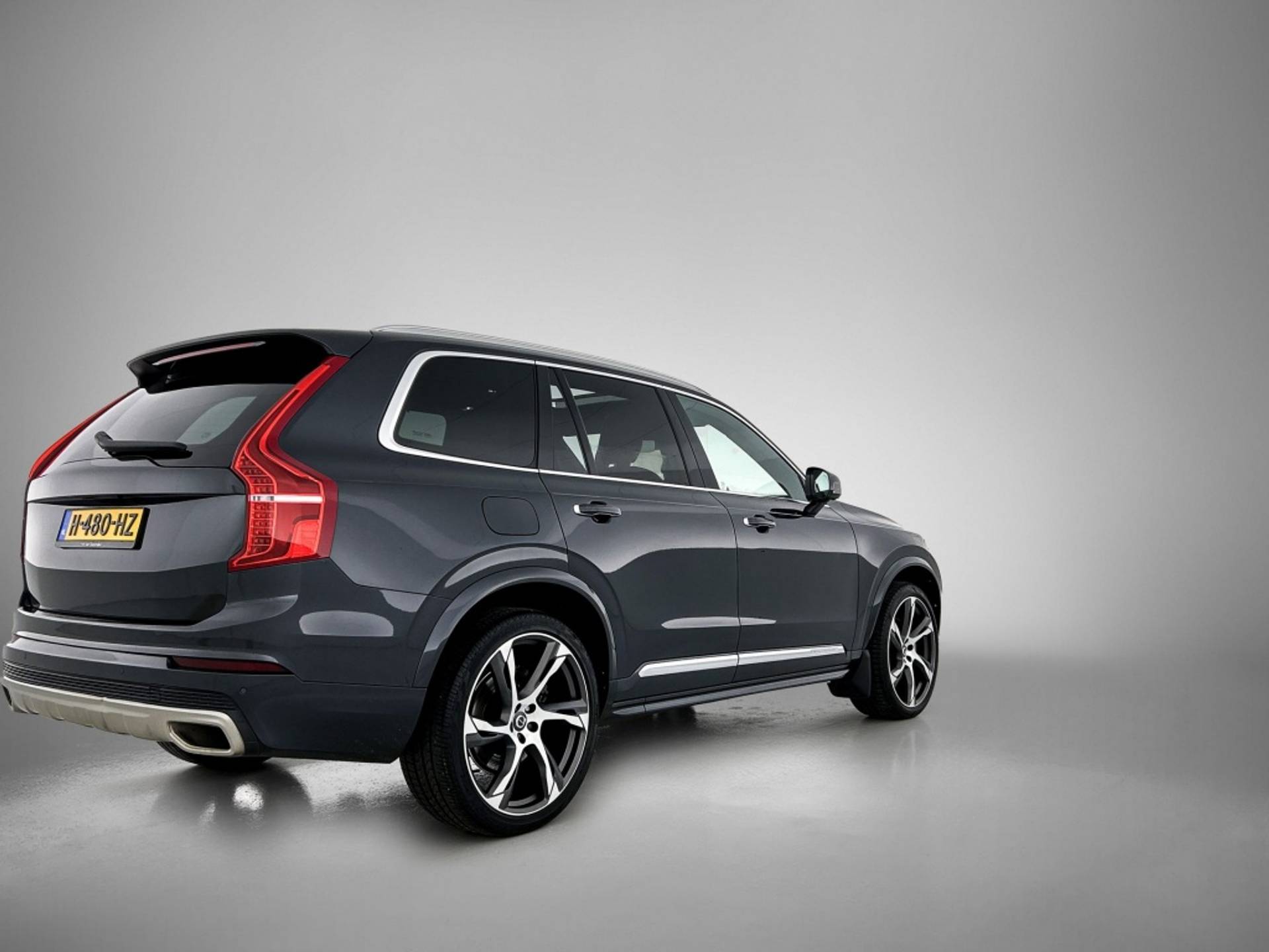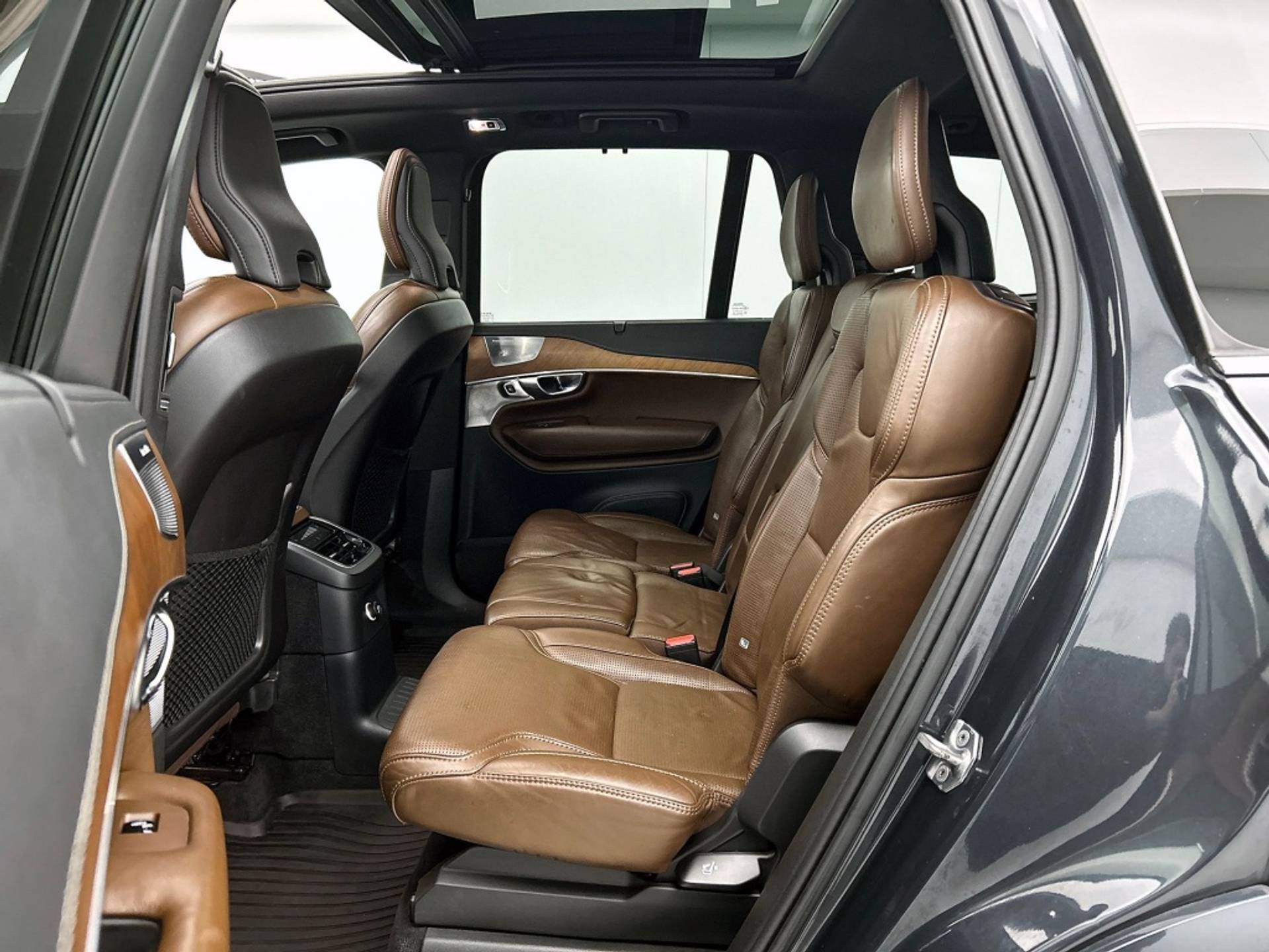 Met vijf deuren en een robuuste suv-carrosserie is deze Volvo XC90 niet alleen praktisch, maar ook stijlvol. De metallic lak geeft de auto een luxe uitstraling, terwijl het panoramadak zorgt voor een lichte en ruime ervaring in het interieur.
