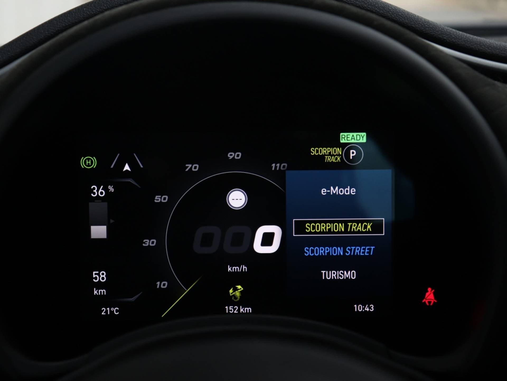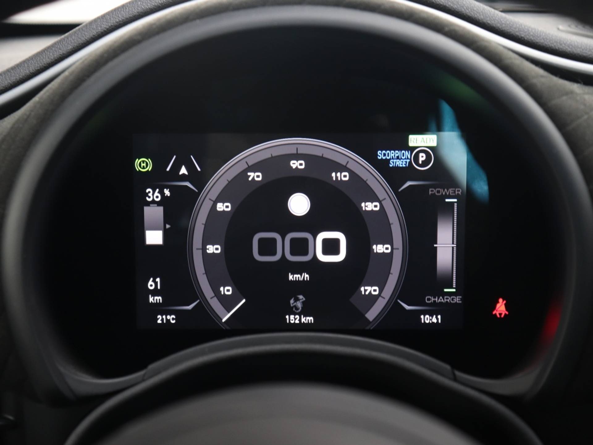 RIJDEN MET ÉÉN PEDAAL: De rijmodussen Turismo en Scorpion Street Mode bieden je de mogelijkheid tot ‘One Pedal Drive’. Je gebruikt het rijpedaal dan niet alleen om weg te rijden en te accelereren, maar ook om af te remmen: je voet van het pedaal halen is voldoende om vaart te minderen of te stoppen.
