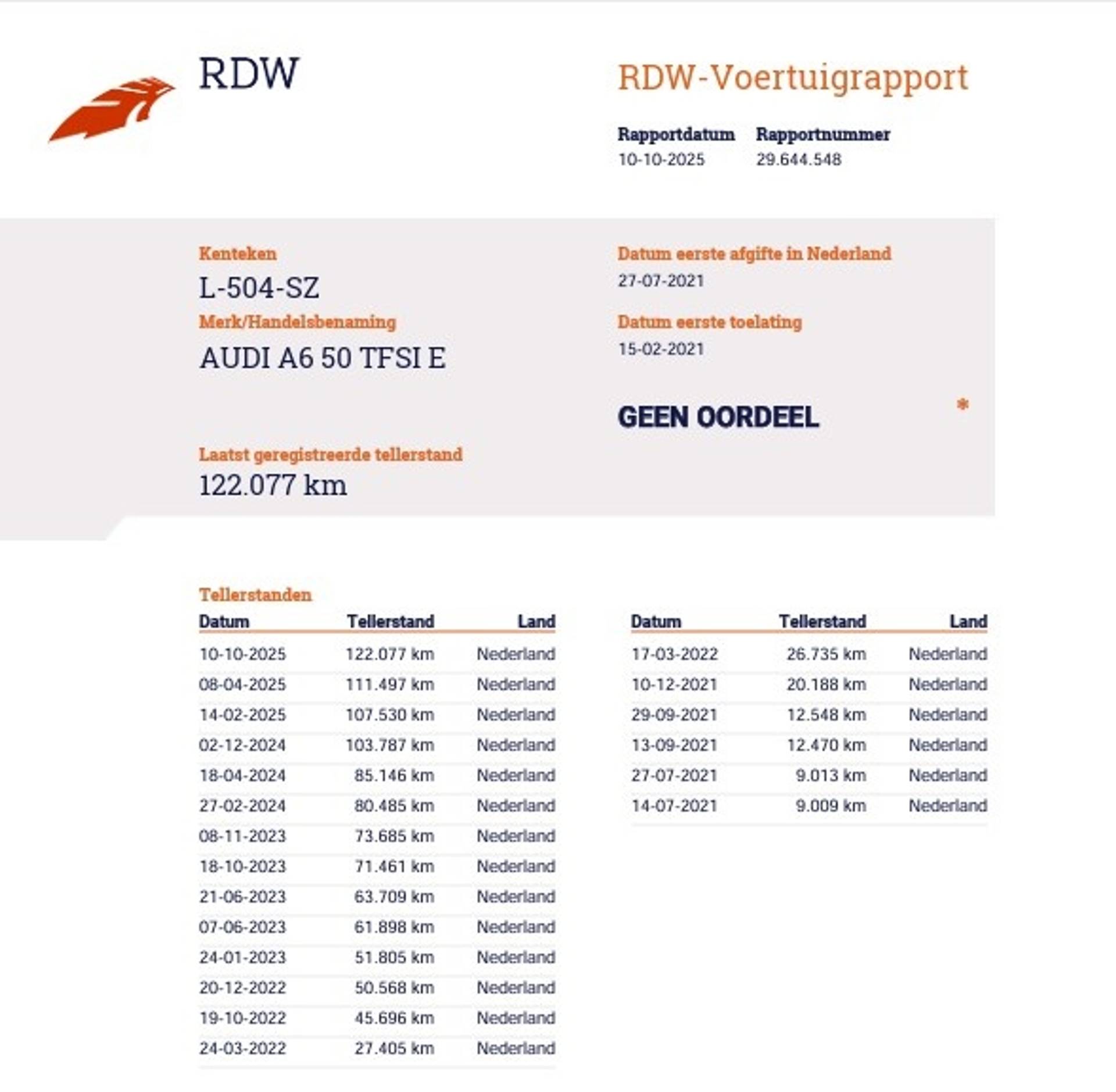 RDW Tellerrapport: https://voertuigrapportdownloaden.rdw.nl/kenteken/L504SZ