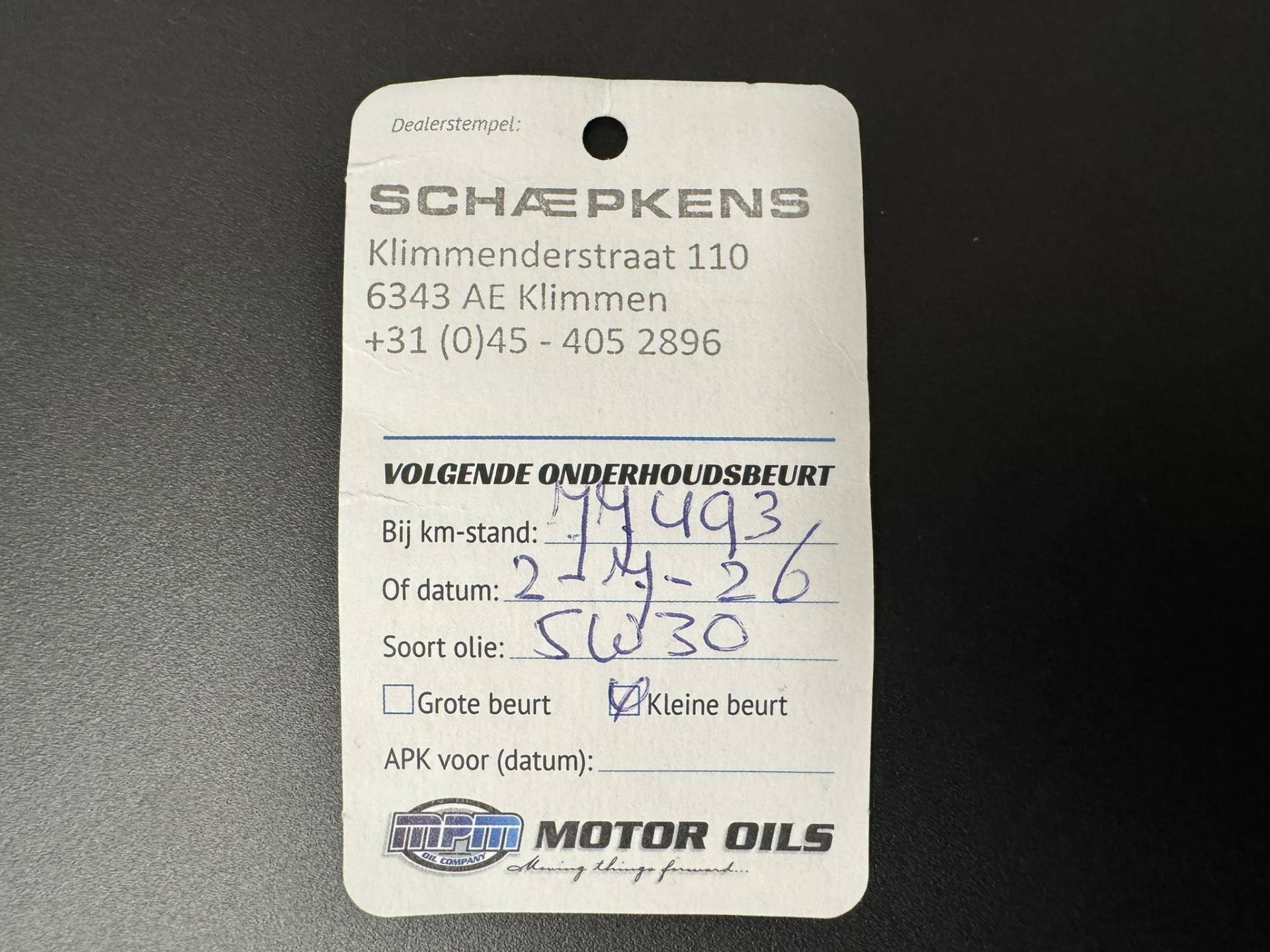 APK bij aflevering