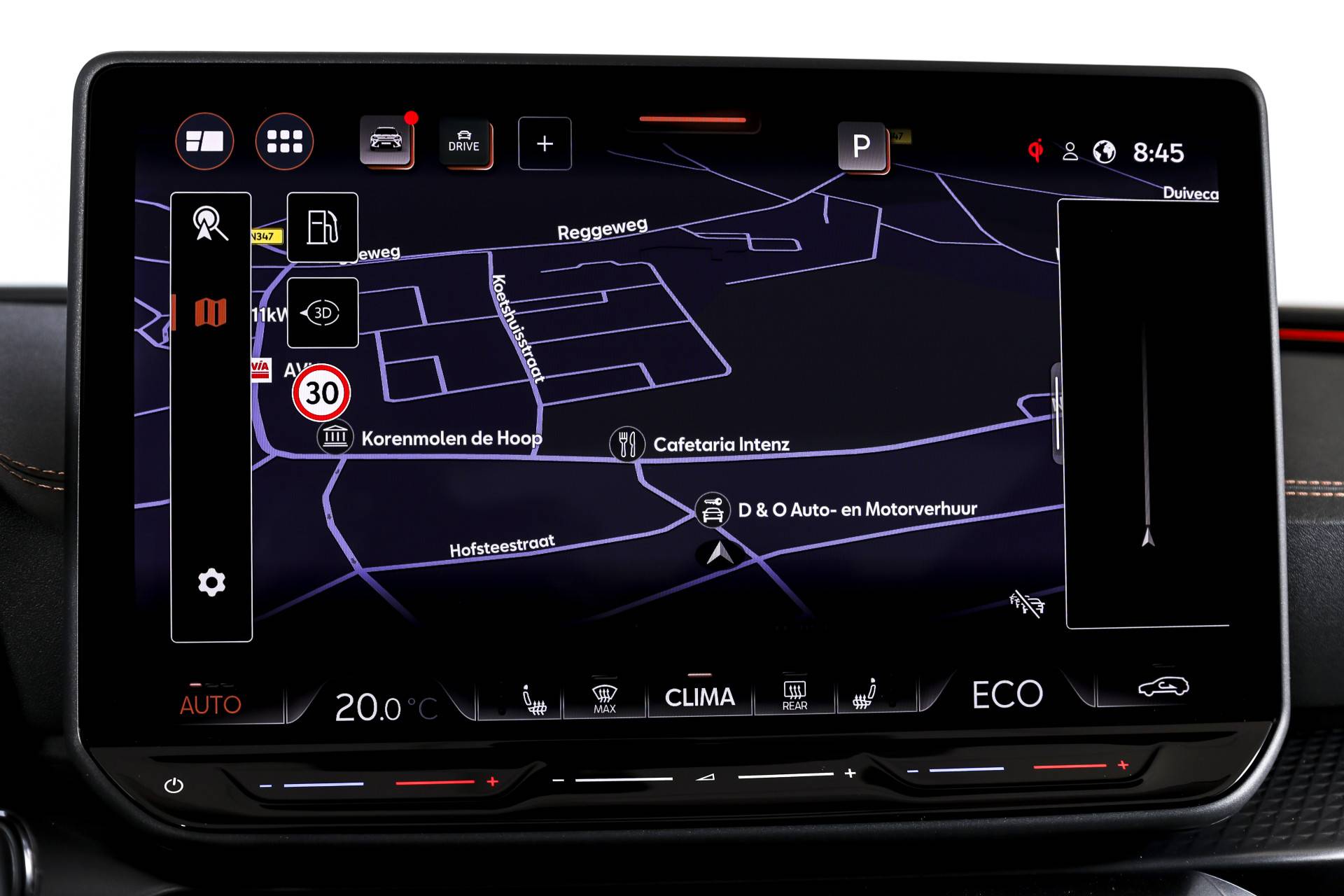 Het interieur is sportief en hoogwaardig afgewerkt, met kuip sportstoelen in microvezel bekleding. De elektrisch verstelbare bestuurdersstoel met geheugen zorgt ervoor dat je altijd direct de juiste zitpositie hebt. Voor extra comfort zijn de voorstoelen verwarmd en is ook het stuur verwarmd, prettig op koude dagen. Daarnaast beschikt de auto over interieur voorverwarming/(koeling), zodat je altijd instapt in een aangename temperatuur. Alle rij-informatie wordt overzichtelijk weergegeven via het volledig digitaal instrumentenpaneel.