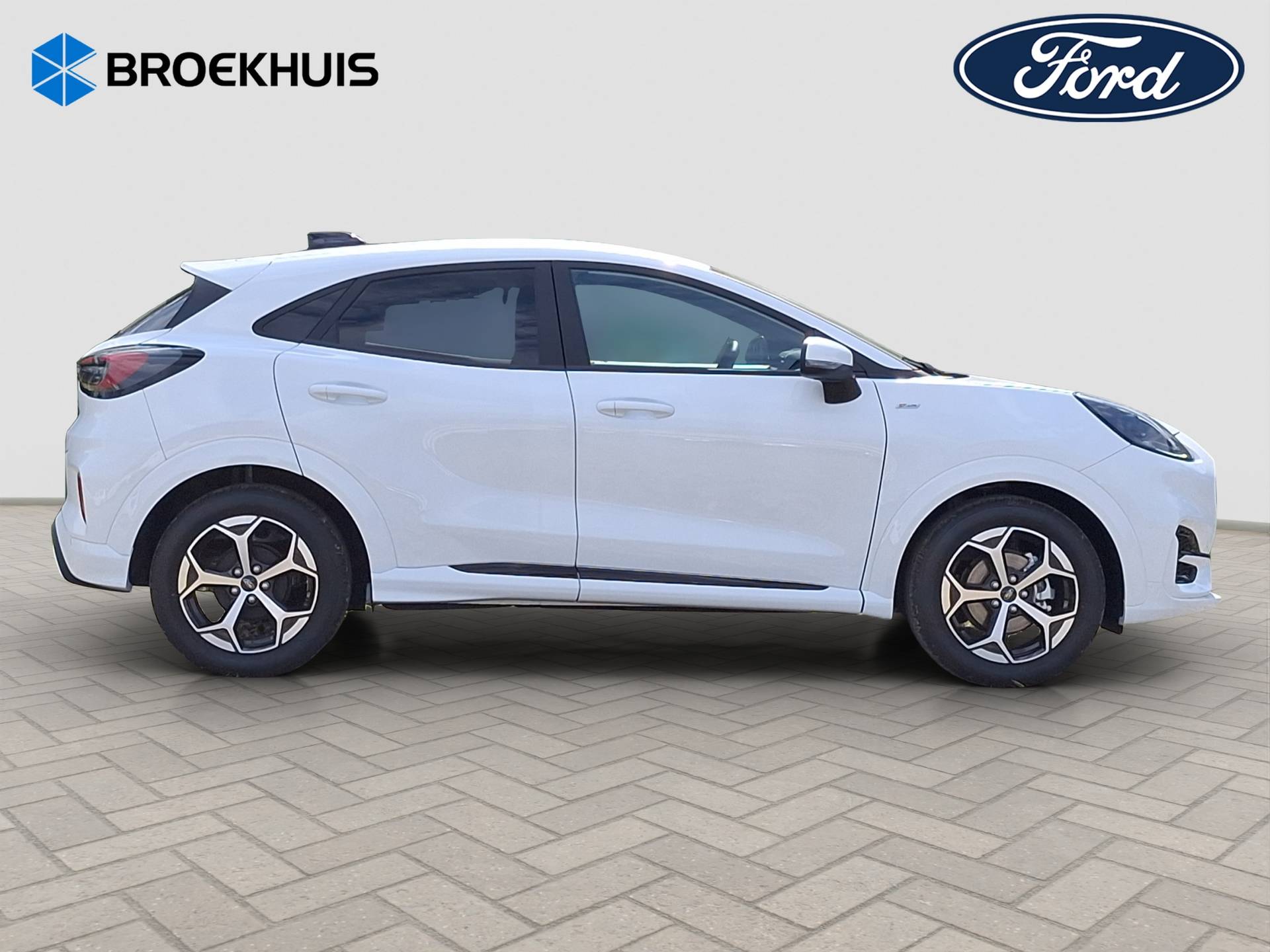 Sportieve en complete Ford Puma ST-Line met zuinige 1.0 EcoBoost Hybrid motor (125 pk) en handgeschakelde 6-bak. Uitgevoerd in Frozen White en voorzien van het Comfort Pack en Winter Pack voor extra gemak en comfort.