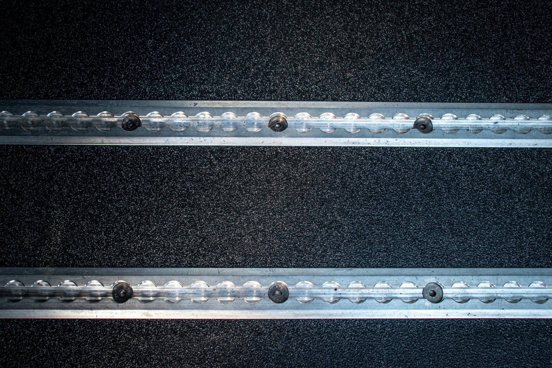 Grijze zijwandbeplating met bindrail over de gehele lengte