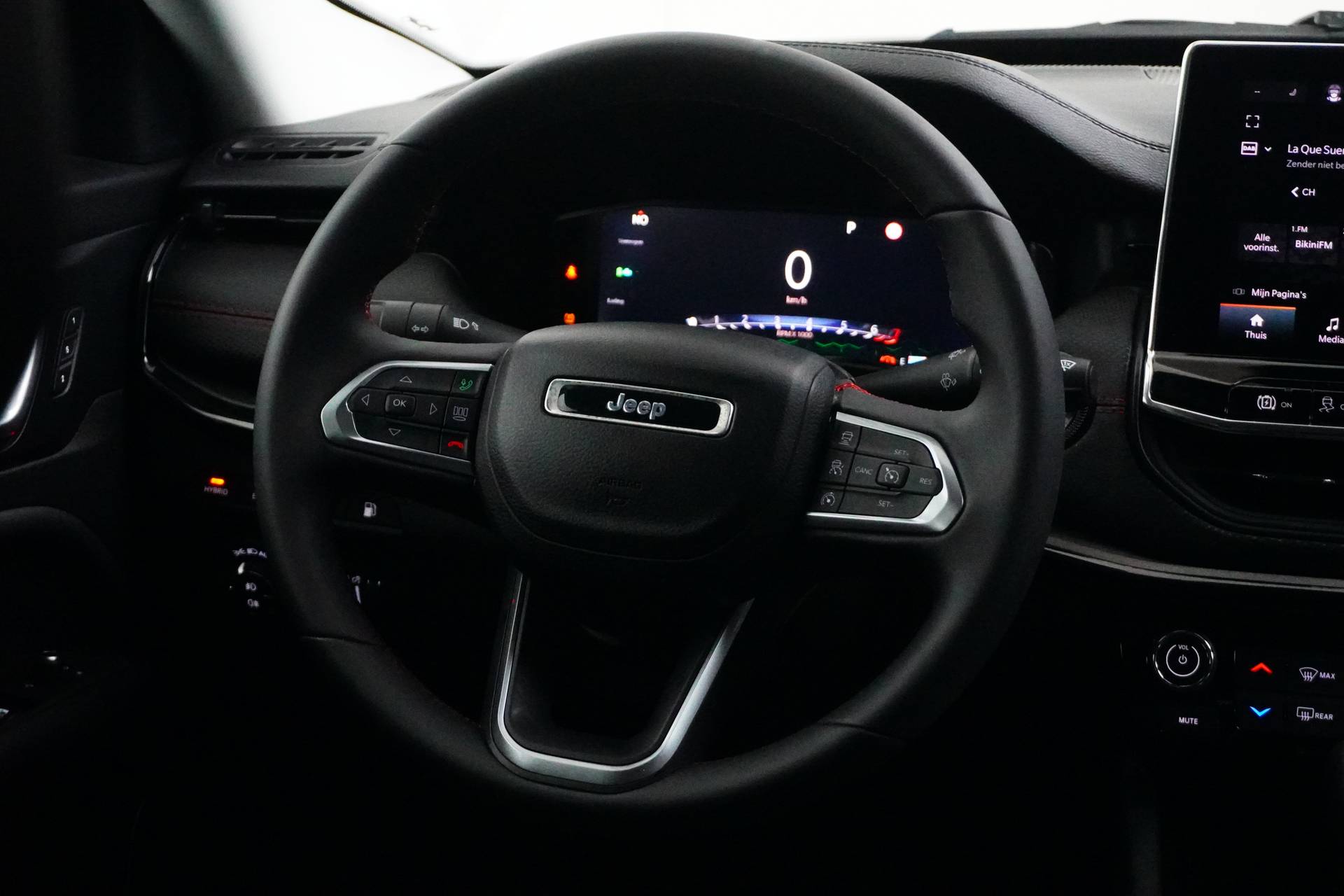 U gelooft het misschien moeilijk, maar deze Jeep Compass is niet nieuw. Nèt niet. De eerste eigenaar heeft 'm eventjes voor u ingereden en de nieuwprijs voor zijn rekening genomen. Nu is-ie voor u. Zuiniger, schoner en stiller: dat zijn de voordelen van de hybride motor in deze Jeep Compass. De slimme combi van brandstof- en elektromotor is goed voor het milieu én de portemonnee! Ouderwets vakmanschap en natuurlijke materialen komen samen in het lederen interieur. Bij de rijke uitrusting horen ook geventileerde voorstoelen, 17 inch lichtmetalen velgen, Full LED koplampen, adaptief onderstel, trailer assistent en extra getint glas. Wat ook opvalt, is de strakke en overzichtelijke informatie die het digitale dashboard levert. Onder alle omstandigheden perfect zicht op wat zich achter de auto afspeelt: de achteruitrijcamera zorgt ervoor! Met adaptive cruise control houdt de auto zelfstandig afstand tot uw voorligger. Een veiligheidsverhogende optie waarmee u comfortabel onderweg bent. In het zeldzame geval van een storing weet u nog eerder dan de monteur wat er mankeert. Uw smartphone met remote services geeft direct inzicht. Het audio-installatiesysteem (met dab-ontvangst!) bedient u met knoppen op het stuur. Met automatische airconditioning, regensensor, keyless entry, automatisch dimmende binnenspiegel, bagage afdekhoes en verstelbaar stuur is deze Jeep helemaal compleet. De intelligente veiligheidssystemen in deze auto waken continu over uw veiligheid. In het instrumentarium laat de verkeersborddetectie de actuele verkeersborden zien. Deze Jeep Compass is ook behulpzaam als het gaat om een rechte koers. Het Lane-keeping systeem signaleert en corrigeert als u onbedoeld de rijstrooklijnen dreigt te overschrijden. Deze auto waarschuwt de bestuurder als die tekenen van vermoeidheid vertoont en kan zo ernstige ongelukken voorkomen. Verder is deze auto uitgerust met hill hold functie, frontale botsbescherming en bandenspanningcontrolesysteem. Als u meer wilt weten over deze auto, dan vertellen we u dat graag. Belt of mailt u ons vandaag nog?