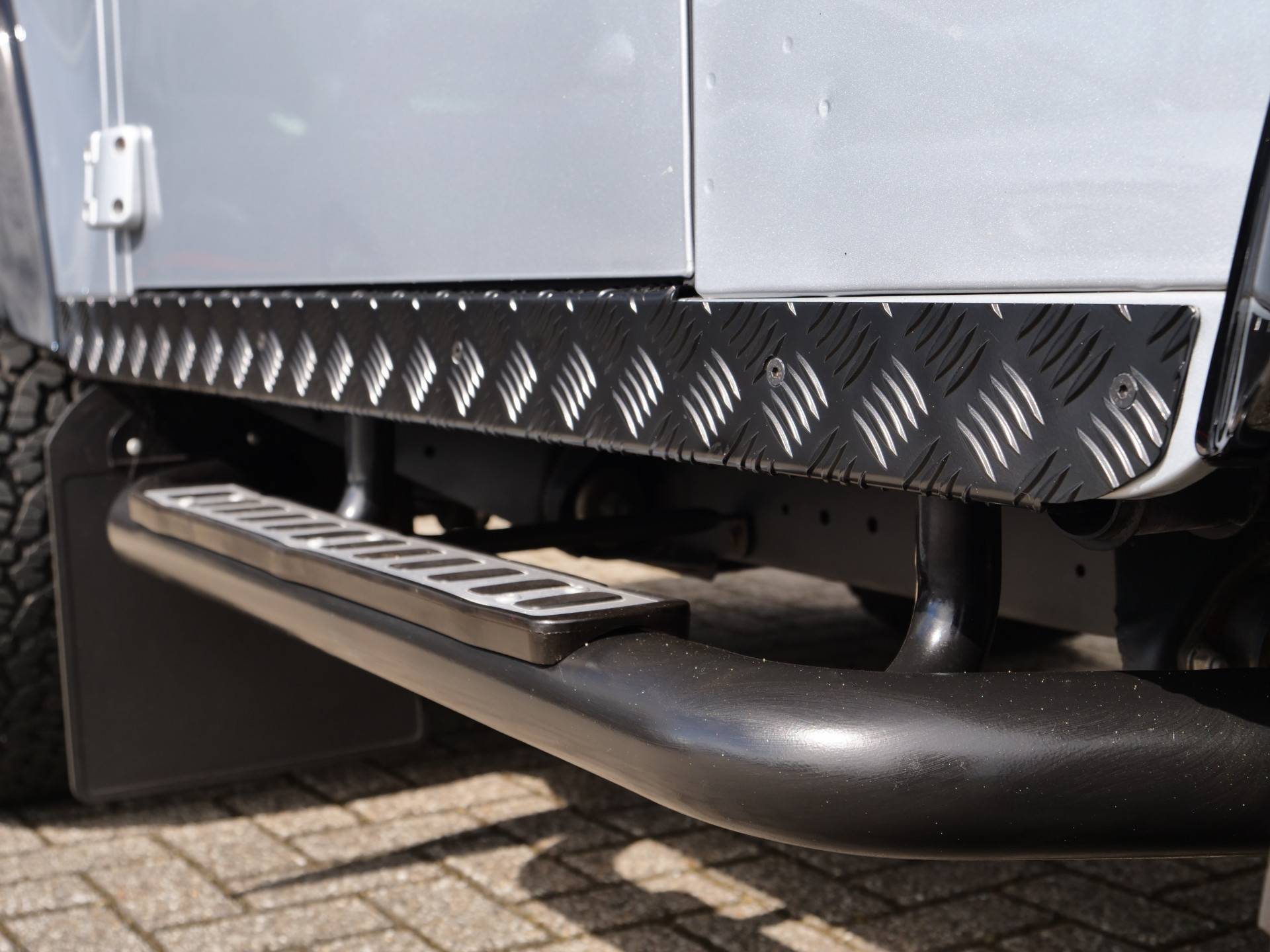 Wij zelf hebben de Defender gestyled en hebben met zwarte accenten gewerkt wat de hem een zeer stoere uitstraling geeft ook het interieur is volledig met leder afgewerkt en de zetels met leer en alcanatara bekleed.