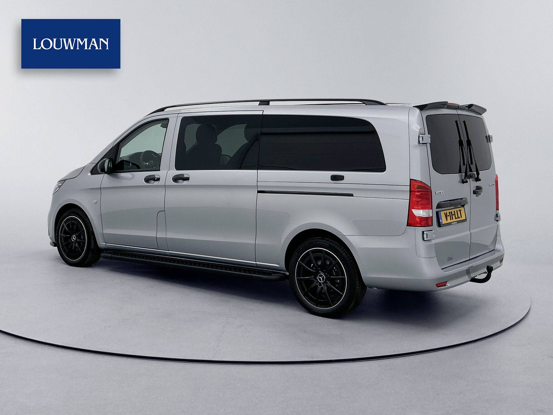 Met een lichte zilveren metallic lak heeft deze Vito een moderne en representatieve uitstraling. De wagen is verder voorzien van belangrijke comfort- en veiligheidsopties zoals cruise control en parkeersensoren voor en achter.