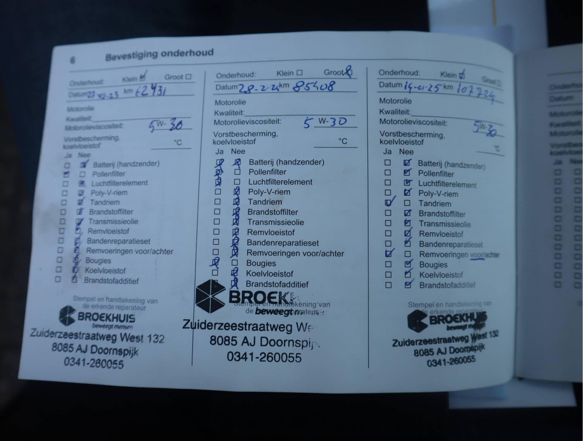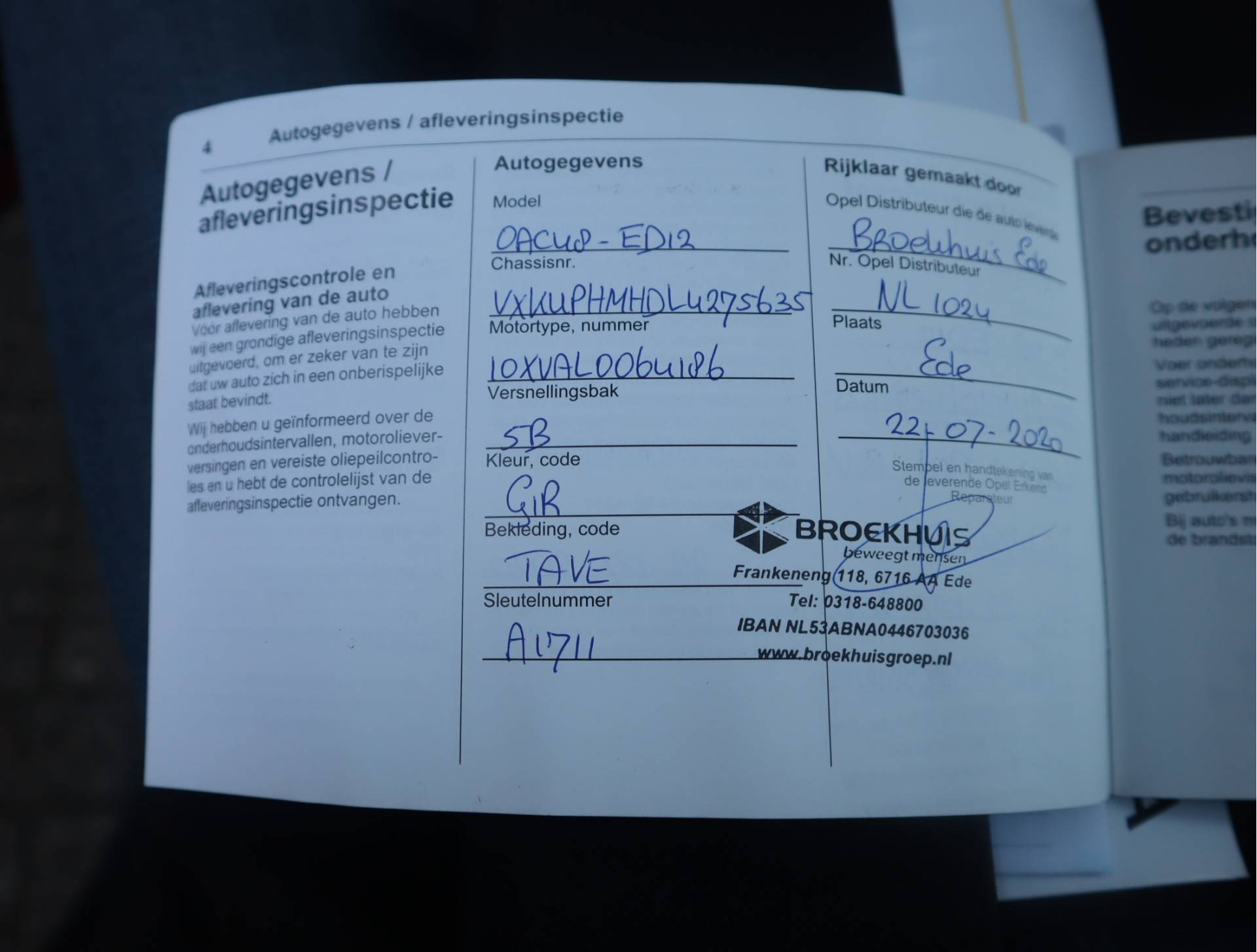 ✓ APK bij aflevering: J
