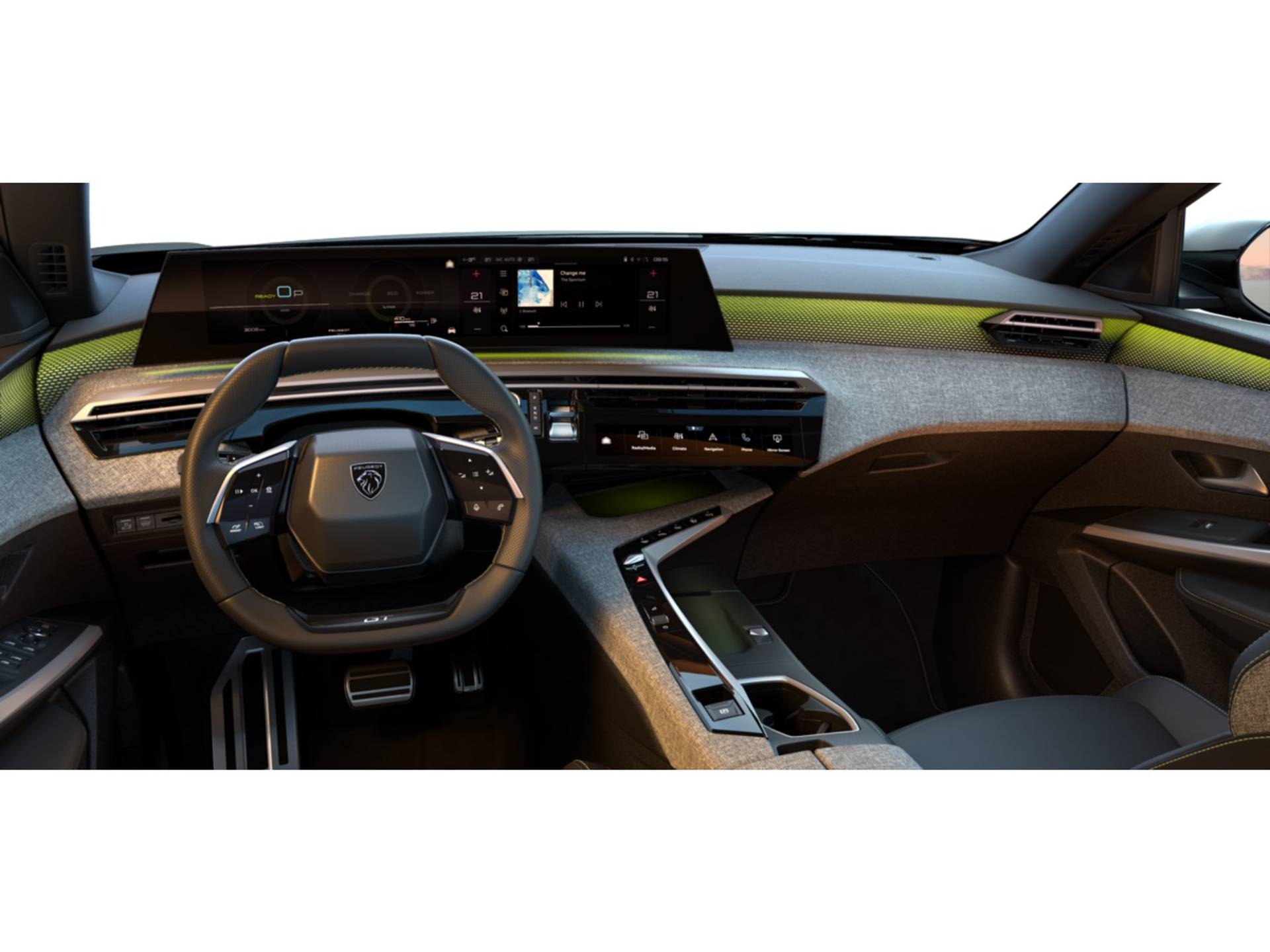 ✓ PEUGEOT Panoramic i Cockpit® met 21 inch gebogen , zwevend HD scherm