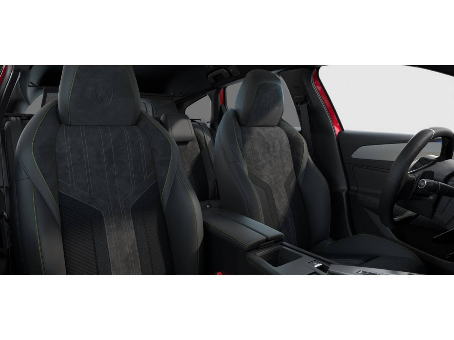 ✓ Portierbekleding met Alcantara decoratie, kunstleer afgewerkte handgrepen met stiksels in groen Adamite en grijs Tramontane