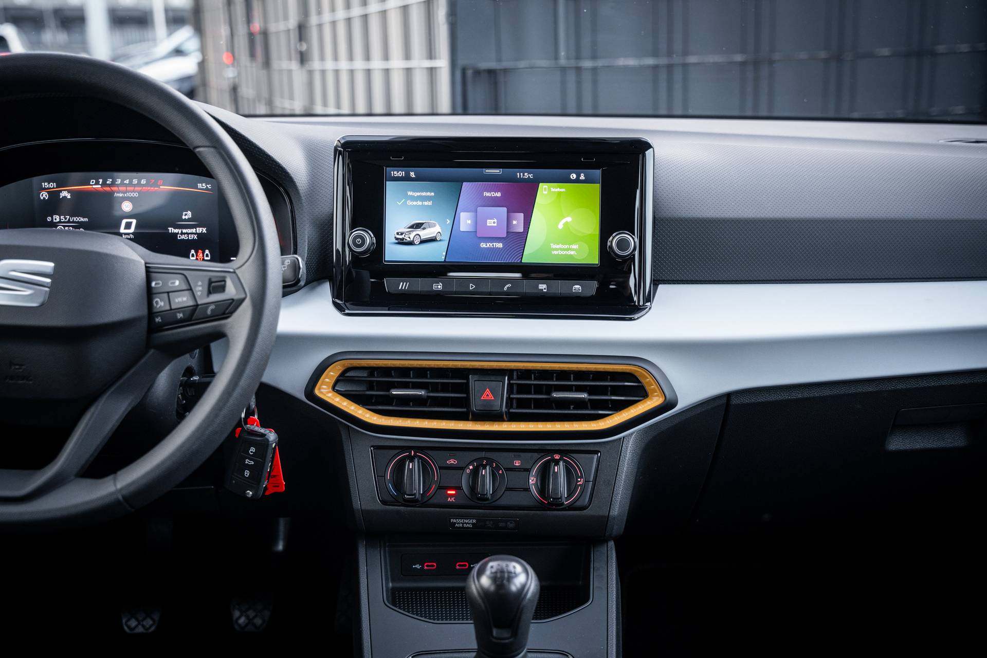 Gering in formaat, groots in mogelijkheden, deze SEAT Arona. Met deze SEAT is een pittige rijstijl mogelijk, terwijl de motor toch spaarzaam met brandstof omgaat. Een gezonde dosis zen-gevoel is bijgeleverd in de vorm van comfortstoelen. Tot de voorzieningen van deze auto behoren 16 inch lichtmetalen velgen, LED koplampen en in delen neerklapbare achterbank. Alle ritinformatie en communicatie is gebundeld in één overzichtelijk digitale dashboard. Uw smartphone is tegenwoordig de sleutel tot heel veel. Ook voor deze auto. Remote services, noemen we dat. Waar u ook bent, contact houden is een eitje. In deze Arona vindt u niet alleen schakelaars op het stuur om het audiosysteem met DAB-ontvangst te bedienen, maar er is ook spraakbediening. Met de aanwezige parkeersensoren weet u altijd zeker of het past. Ook op de korte stukken is de cruise control een uitkomst. Kijk maar bij de benzinepomp! Ook is de SEAT uitgerust met: airconditioning, automatisch dimmende binnenspiegel, centrale deurvergrendeling met afstandsbediening en boordcomputer. Het zal u verbazen hoe deze auto in staat is om voor u de omgeving en het verkeer om u heen in de gaten te houden. Onderweg zorgt verkeersborddetectie ervoor dat u geen waarschuwingsbord mist. Met het Lane-keeping systeem komt u nooit per ongeluk buiten de rijstrook. Het forward collision warning-systeem berekent via een sensor de afstand tot het verkeer vóór u en komt in actie als er gevaar bestaat van een botsing. De veiligheid van deze auto wordt verder verhoogd door hill hold functie, vermoeidheidsherkenning, autonoom remsysteem en bandenspanningcontrolesysteem. Nieuwsgierig geworden? Kom deze auto dan snel bij ons bekijken.