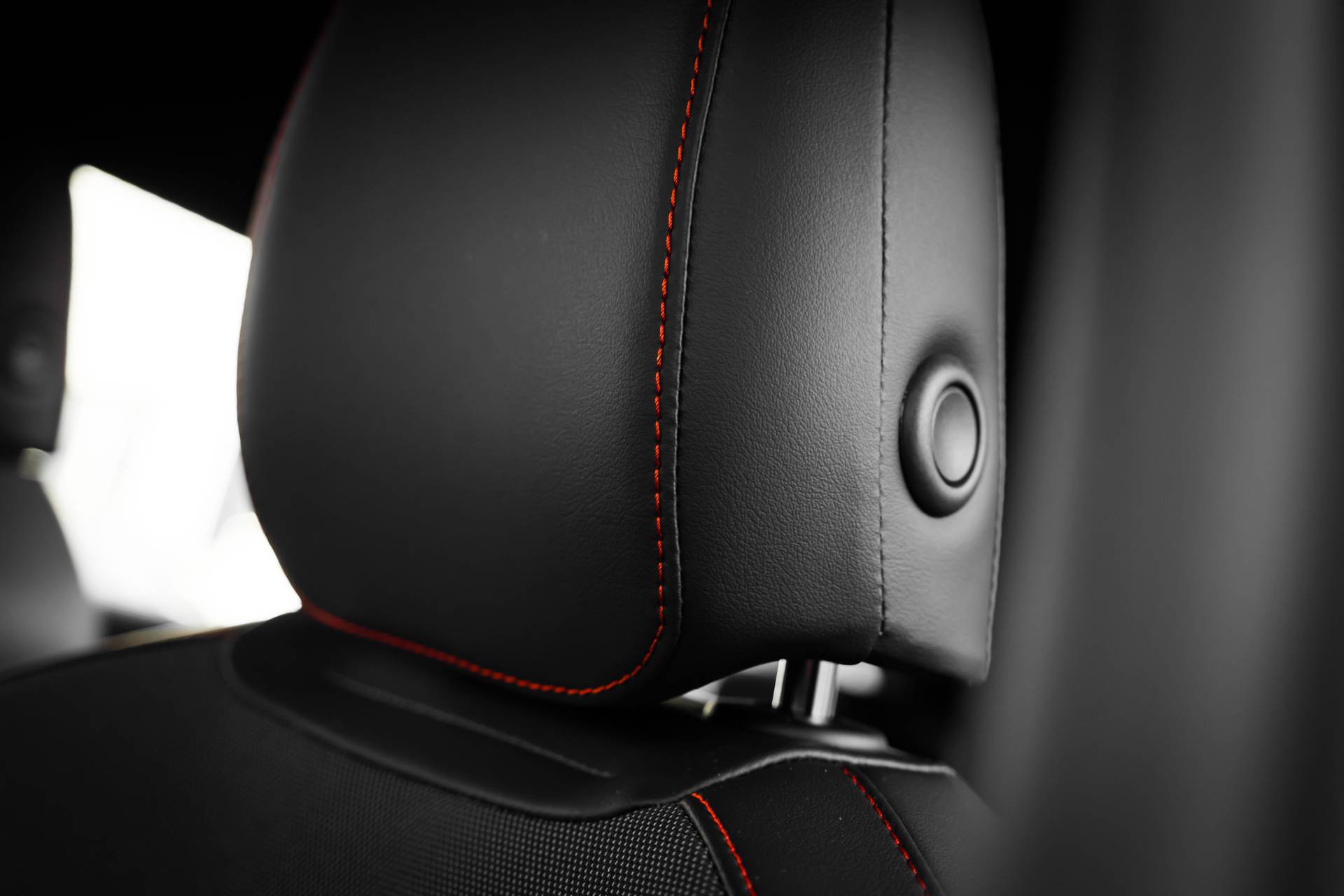 Interieur: Bekleding stof Two-tone Grey & Lava Red stiksels