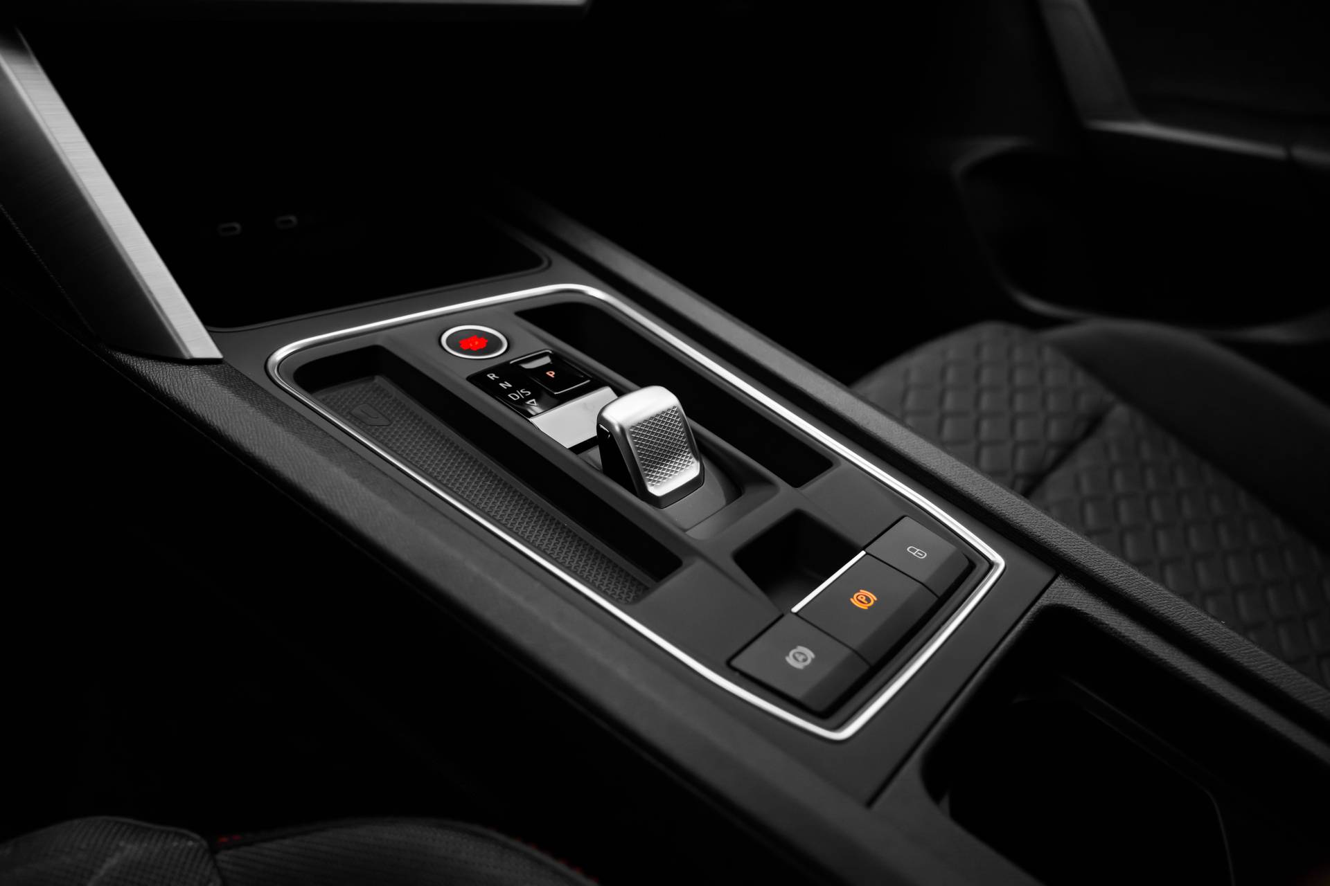 Interieur: Bekleding stof Two-tone Grey & Lava Red stiksels