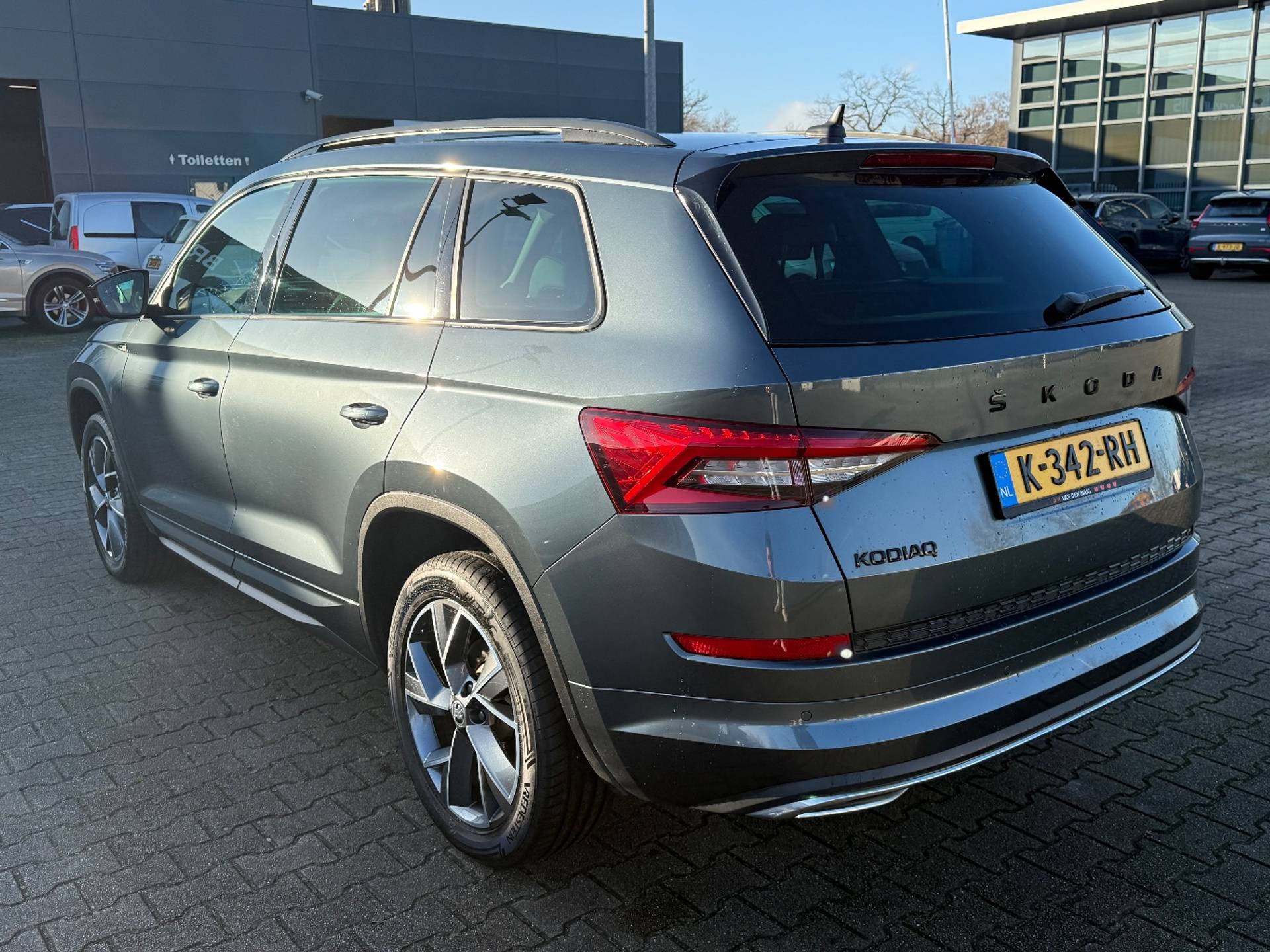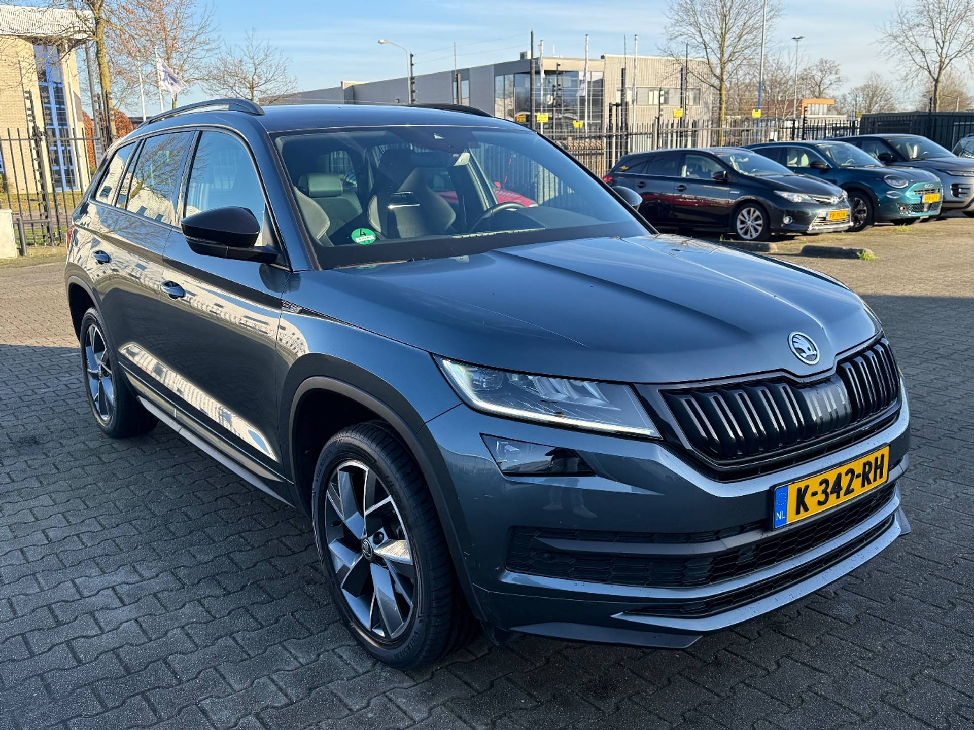 Deze auto nodigt u uit om plaats te nemen achter het sportstuur en onmiddellijk de weg op te gaan. In deze auto vindt u een benzinemotor en een automatische transmissie. 's Winters komen de verwarmbare voorstoelen heerlijk van pas. Mooi om te zien en heerlijk om in te zitten zijn de sportstoelen, die u onderweg optimale ondersteuning geven. De elektrische achterklep opent met een druk op de knop, zodat u gemakkelijk toegang heeft tot de bagageruimte. Bij de zeer complete uitrusting van deze auto behoren ook 19 inch lichtmetalen velgen, LED koplampen, dakspoiler, extra getint glas, in delen neerklapbare achterbank en LED-achterlichten. In één oogopslag heeft u alle benodigde functies onderweg in beeld, dankzij het slim ingedeelde digitale dashboard. Met de achteruitrijcamera ziet u wat er achter de auto gebeurt. Zo rijdt u moeiteloos achteruit. Adaptive cruise control houdt de ingestelde snelheid vast en houdt automatisch afstand tot uw voorligger. Appen met uw auto? Geen probleem. U kunt van overal contact opnemen, de functies controleren en activeren. U bedient 'm met remote services. Onderweg kunt u veilig genieten van het audiosysteem met DAB-radio en het full map navigatiesysteem. Want in deze Skoda bedient u ze vanaf het stuurwiel of met uw stem. Ook is de Skoda uitgerust met: achteropkomend verkeer waarschuwing, electronic climate control, sportstuur met schakelpaddels, draadloos opladen, regensensor en automatisch dimmende buitenspiegels. Zoals u mag verwachten van deze Skoda Kodiaq is hij uitgerust met een reeks aan actieve veiligheidssystemen. Het systeem van forward collision warning, of in gewoon Nederlands 'botswaarschuwing', treedt in werking als de sensor te weinig afstand signaleert met een voor- of tegenligger. Vermoeid achter het stuur zitten vergroot de kans op een ongeval. Vermoeidheidsherkenning waarschuwt tijdig als u aan een rustpauze toe bent. Ook helpen het frontale botsbescherming en bandenspanningcontrolesysteem, uw rit tot een veilige rit te maken. Natuurlijk bent u van harte welkom om deze auto in ons bedrijf te komen bekijken. Laat u ons weten wanneer u wilt komen?