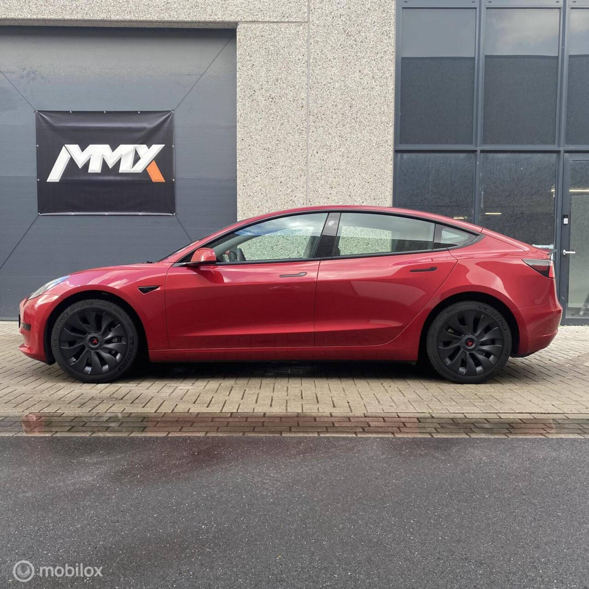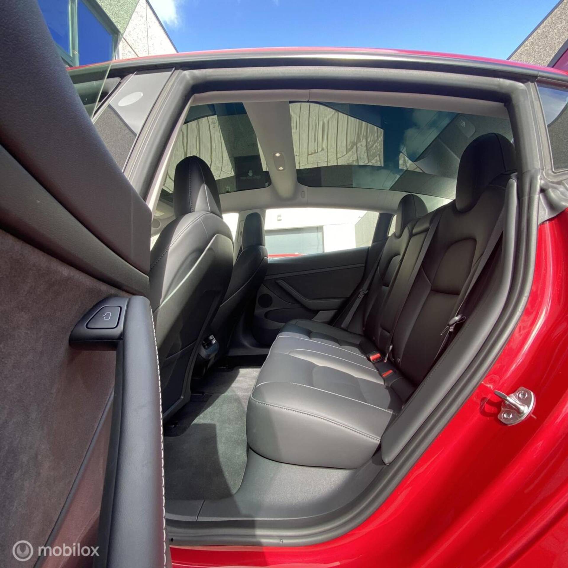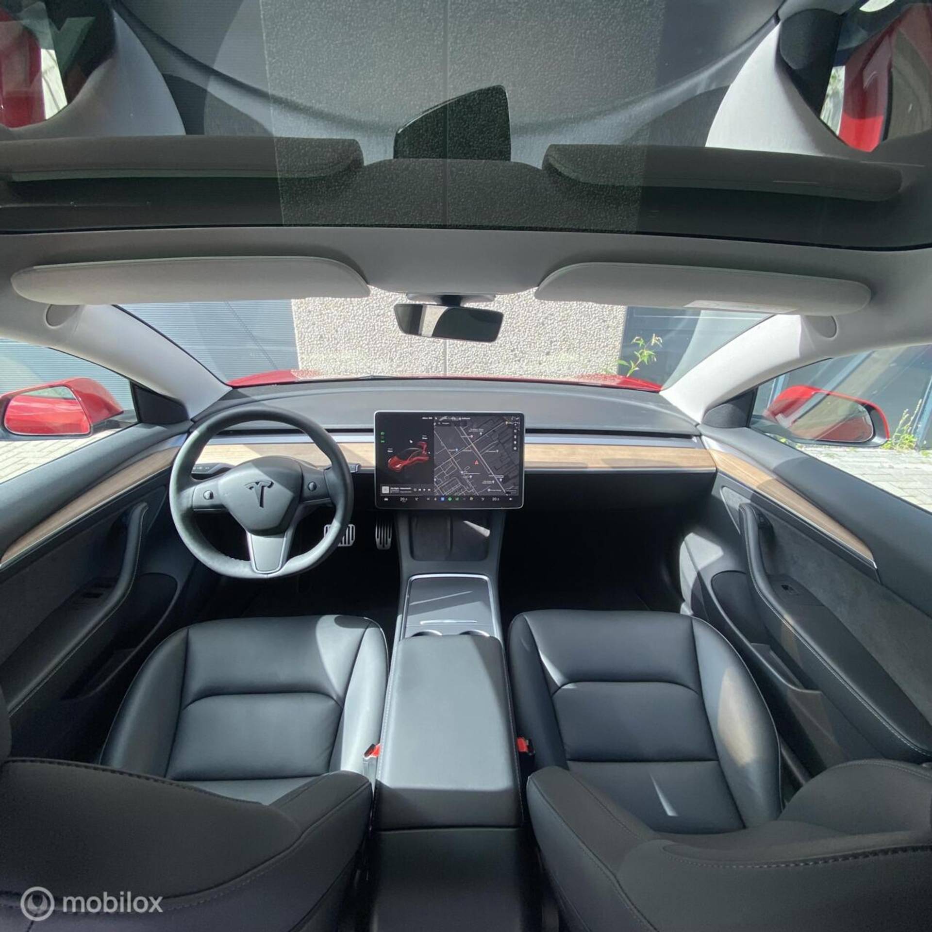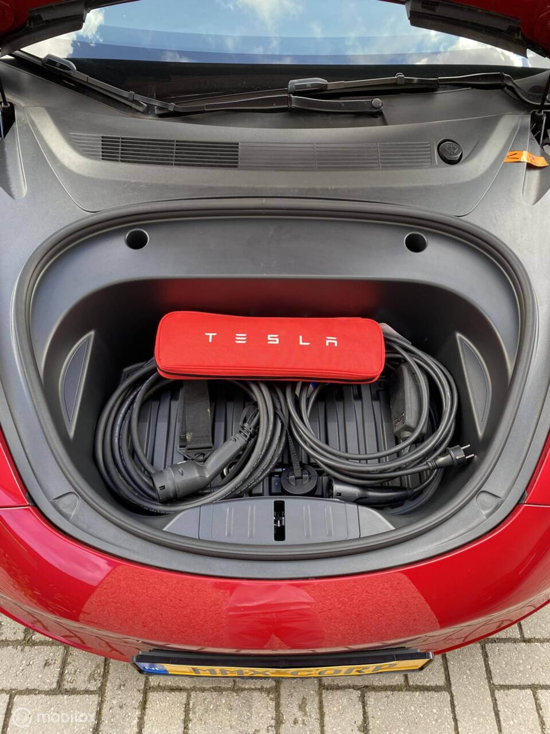 (bijv. zwarte spoiler, aluminium pedalen, zwarte turbine wieldoppen met rood logo, geluiddempende was voor de ruit, zwarte Tesla-logo’s op frunk, trunk en stuur)
