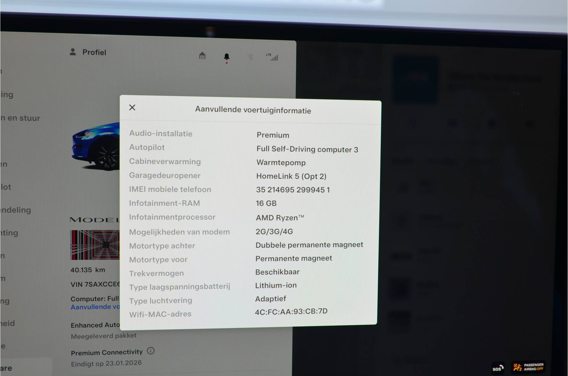 De Tesla Fabrieksgarantie op de gehele auto loopt tot 80.000km of 20-2-2027 en op de motoren en het accupakket tot 240.000km of 20-2-2031! De lage Bijtelling loopt tot 3-2028!