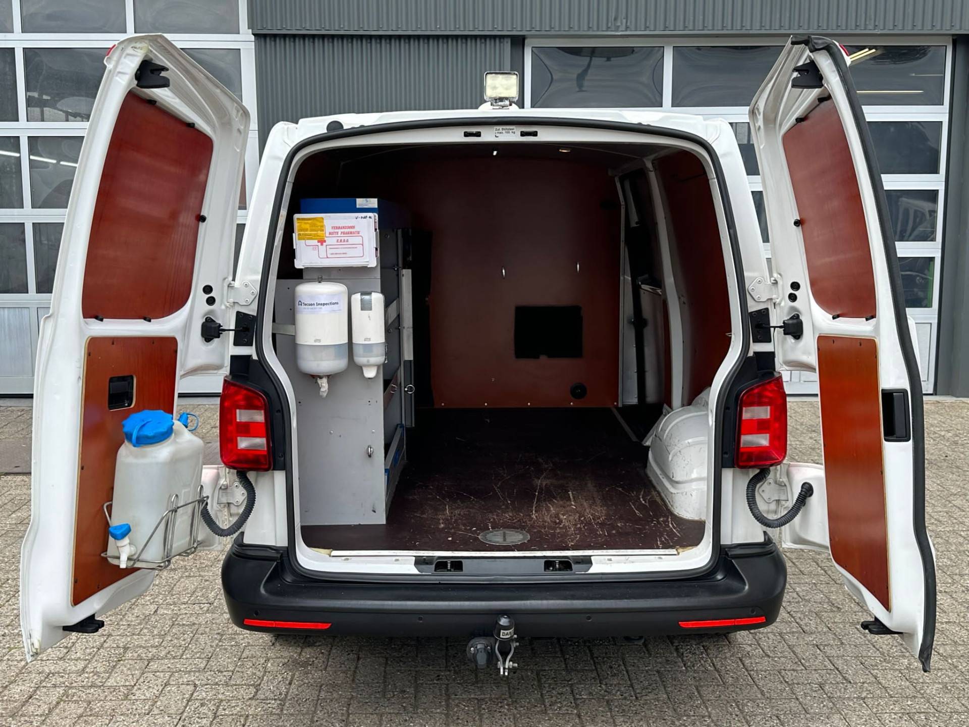 Een zeer nette Volkswagen Transporter T6 2.0 TDI 102pk L2H1 Service wagen met Kastinrichting Airco Cruise control Standkachel Trekhaak 2200kg trekgewicht Telefoonvoorbereiding Usb aansluiting 2-Persoons Parkeerhulp achter 1e eigenaar Dealer onderhouden Euro 6 Bestel