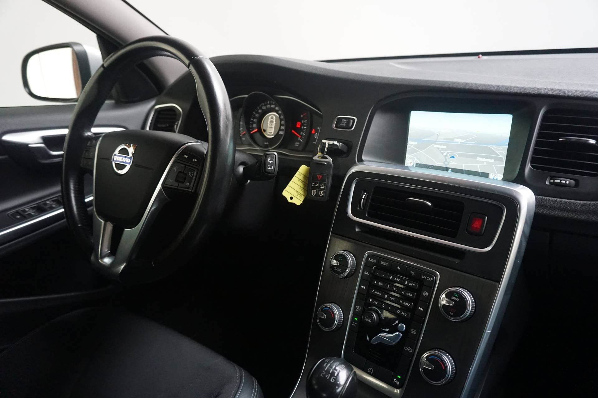 Volvo staat voor veiligheid, dat weten we allemaal. Maar dit Zweedse icoon is nog zoveel meer. Innovatieve technologie en verrassende prestaties in één auto. 'Volvo for life'! De krachtige benzinemotor van deze auto is gekoppeld aan een handgeschakelde zesversnellingsbak. Tot de voorzieningen van deze auto behoren 17 inch lichtmetalen velgen, halflederen bekleding, LED-dagrijverlichting, in hoogte verstelbare voorstoelen, in delen neerklapbare achterbank en verstelbare lendensteunen. Met spraakbediening of de knoppen op het stuur regelt u het audio-installatiesysteem en het navigatiesysteem met harde schijf, terwijl u uw blik op de weg gericht houdt. Ook over uw schouder ziet u onderweg niet alles wat er aan de achterzijde gebeurt. Daarom heeft deze Volvo V60 een achteropkomend verkeer waarschuwing. Met electronic climate control hoeft u alleen de gewenste temperatuur in te stellen. Het systeem doet de rest. De meeste schade bij inparkeren komt van een randje of paaltje dat u even niet zag. Maar de parkeersensoren zien alles en waarschuwen op tijd. Achter het stuur van deze Volvo bent u niet alleen. De auto kijkt als het ware met u mee tijdens de rit. De regensensor schakelt de ruitenwissers in als het nodig is en de automatisch inschakelbare verlichting doet de lichten voor u aan. U bent in deze Volvo ook voorzien van cruise control, dvd-systeem, automatisch dimmende binnenspiegel, lederen stuur en versnellingspook, centrale deurvergrendeling met afstandsbediening en bagage afdekhoes. Pragmatisch en veilig als deze auto is, beschikt hij over diverse veiligheidssystemen. Soepel wegrijden op een helling is eenvoudig met de hulp van hill hold control. De brake assist zorgt voor een kortere remweg tijdens een noodstop. Er is nog meer te vertellen over deze auto, maar dan moet u hem ook zelf ervaren. U bent van harte welkom om hem te bekijken en om een proefrit te maken.