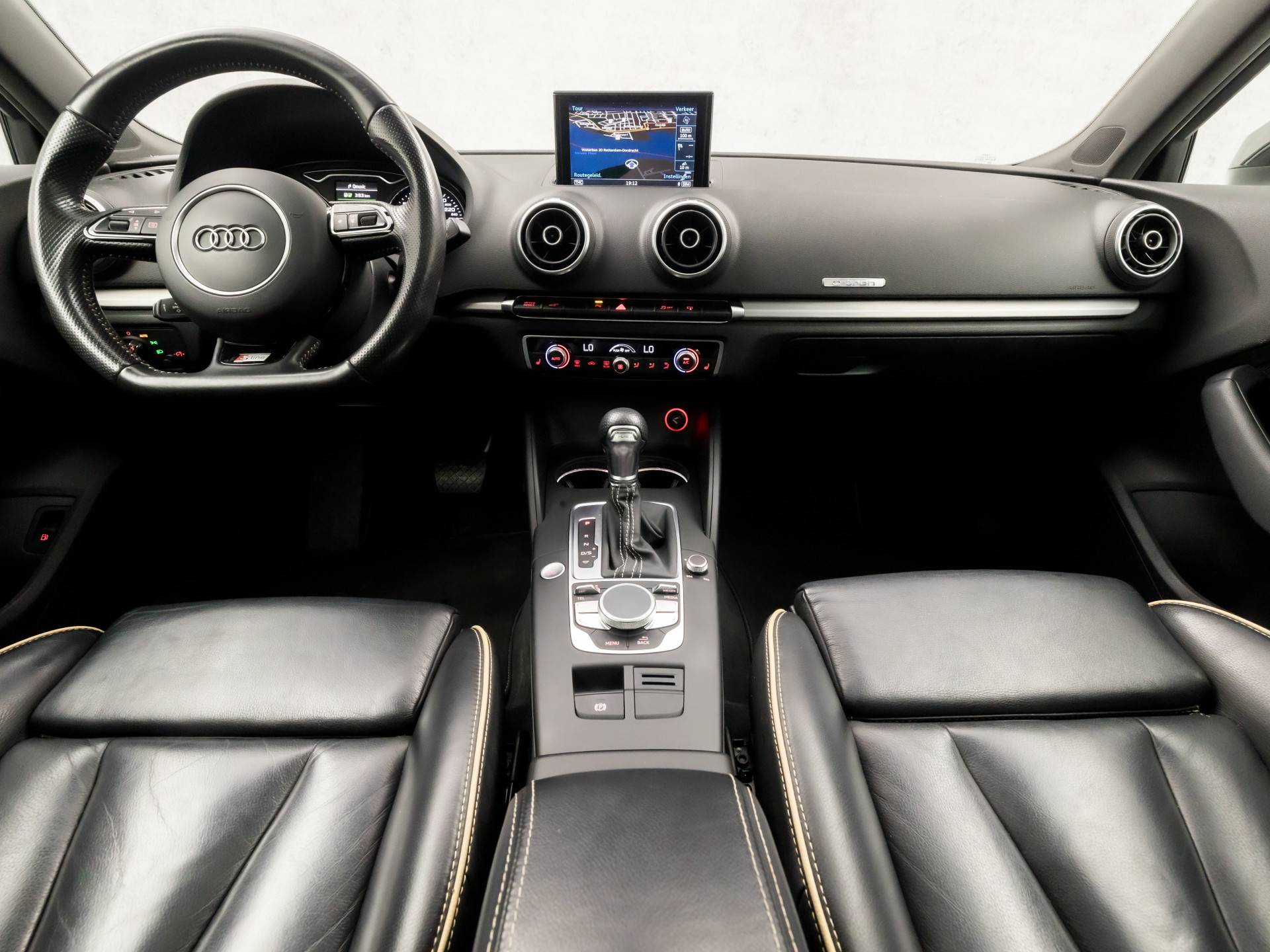 Altijd een deskundige gids aan boord, dankzij het navigatiesysteem met harde schijf. En het wordt nog mooier: deze auto heeft een ingebouwde WIFI-hotspot, zodat iedereen online kan. U verwacht natuurlijk automatische airconditioning in deze auto, en die is er dan ook. Alle audioknoppen letterlijk onder handbereik: dat kan met de audiobediening op het stuur. De parkeersensoren waarschuwen wanneer u te krap inparkeert of dat ene paaltje niet hebt gezien. U bent in deze Audi ook voorzien van WIFI-hotspot, sportstuur met schakelpaddels, regen- en lichtsensor, cruise control, - Gen Bluetooth met Audiostreaming en keyless entry.