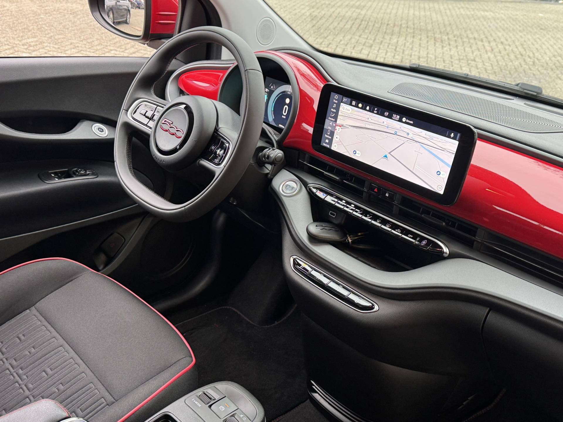 Het digitale dashboard geeft u volledige controle over uw elektrische rijervaring. Via Connected Services houdt u eenvoudig inzicht in onder andere de voertuigstatus, bandenspanning en de parkeerlocatie. Het navigatiesysteem en de audioinstallatie met DAB zijn veilig te bedienen via het stuur, zodat u uw aandacht altijd op de weg houdt. Dankzij cruise control, automatische verlichting, regensensor, airconditioning en automatisch dimmende binnenspiegel is deze elektrische Fiat 500 bijzonder comfortabel en praktisch.