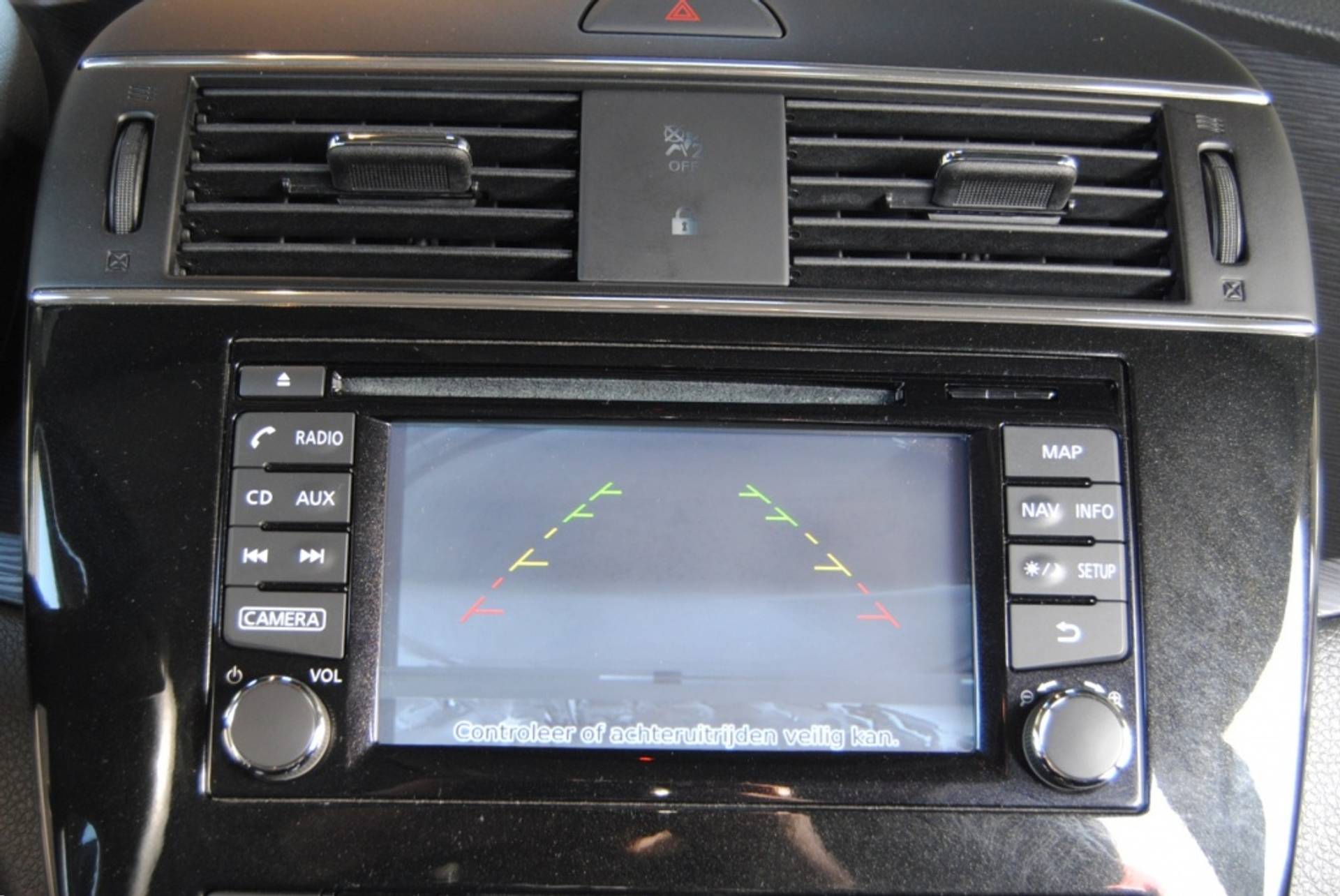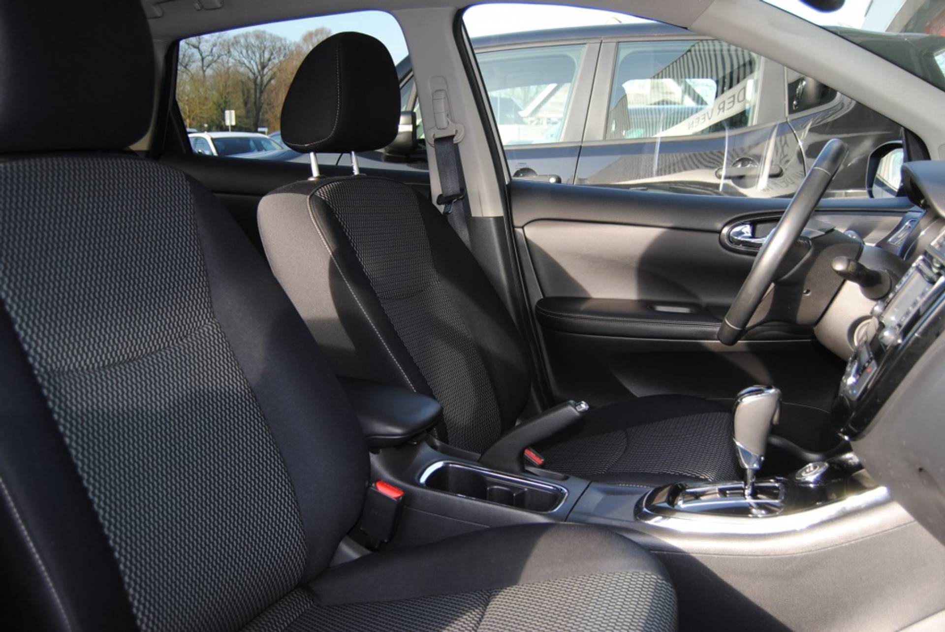 Alles vrij achter? De achteruitrijcamera laat het meteen zien. Automatische airconditioning verwarmt of koelt het interieur met een druk op de knop. Het hoort bij een intelligente auto als deze dat hij zelf in staat is om zijn omgeving in de gaten te houden. Dat doet deze Nissan met een automatisch inschakelbare verlichting en een regensensor. Natuurlijk is deze Nissan Pulsar voorzien van cruise control. De centrale ontgrendeling gebeurt automatisch dankzij de keyless entry. De Nissan is standaard voorzien van: navigatiesysteem en automatisch dimmende spiegels.