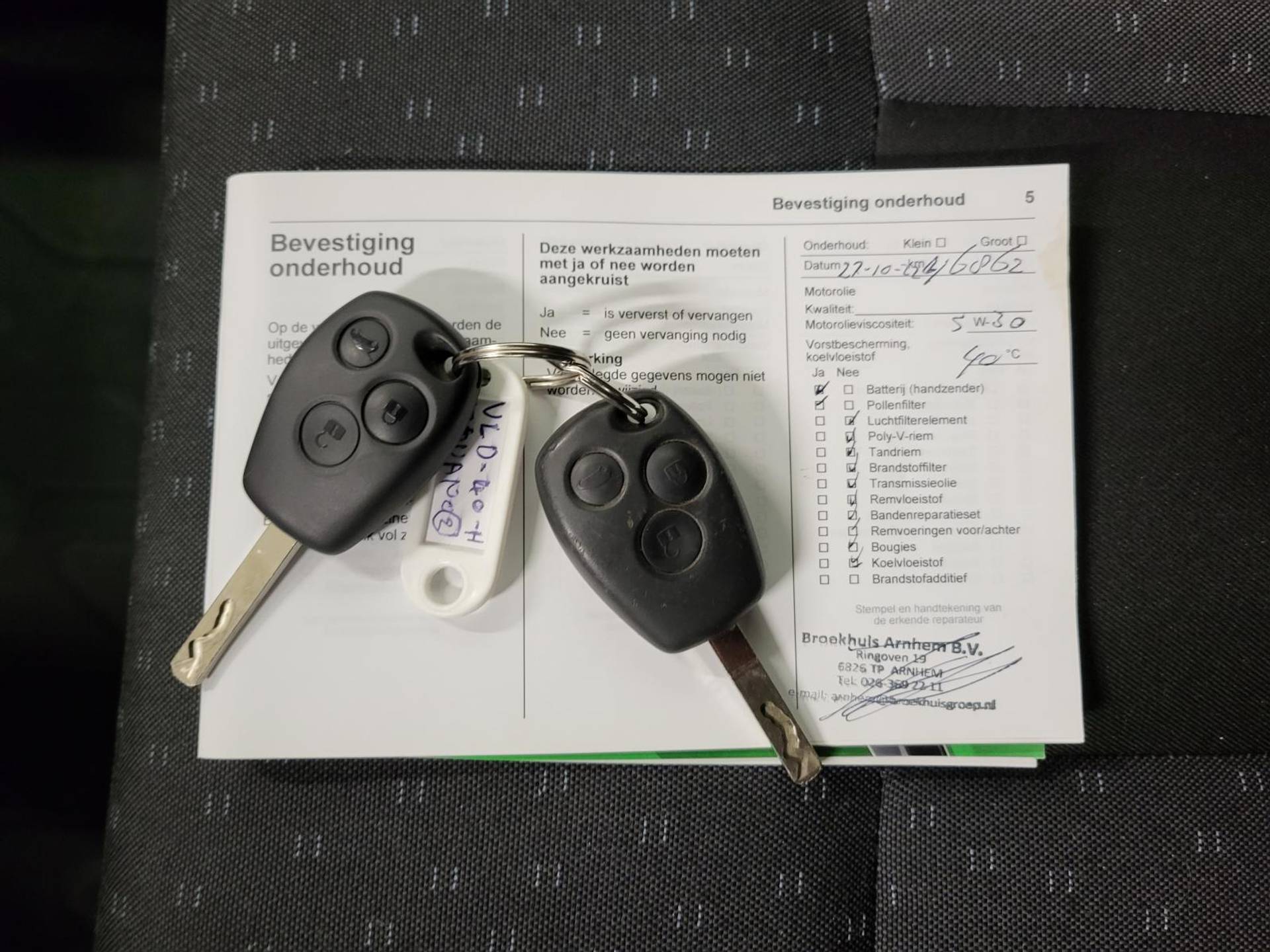 ✓ APK bij aflevering: J