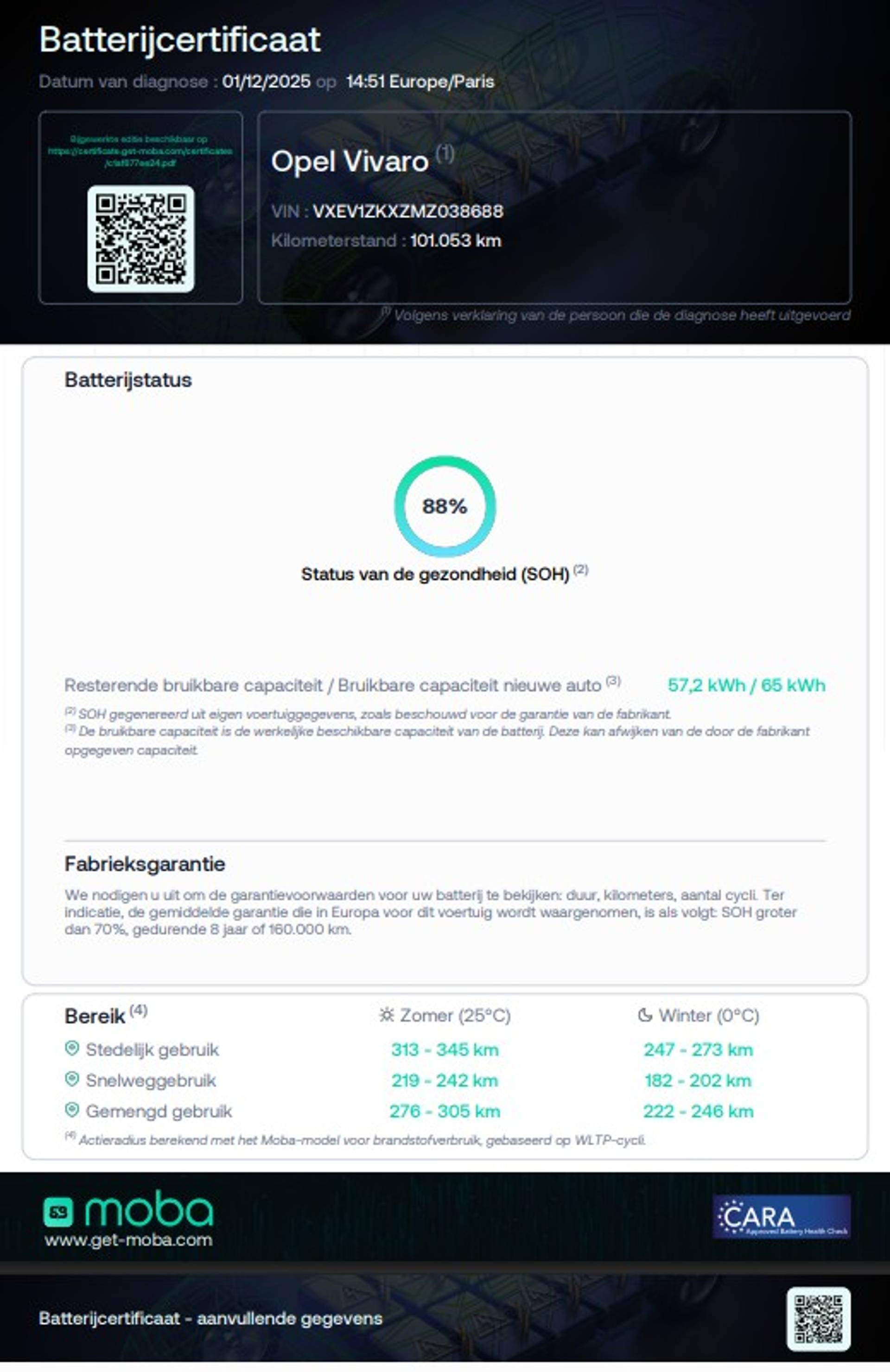 Accu: 75 kWh, Conditie: 88%, Type lithium-ion