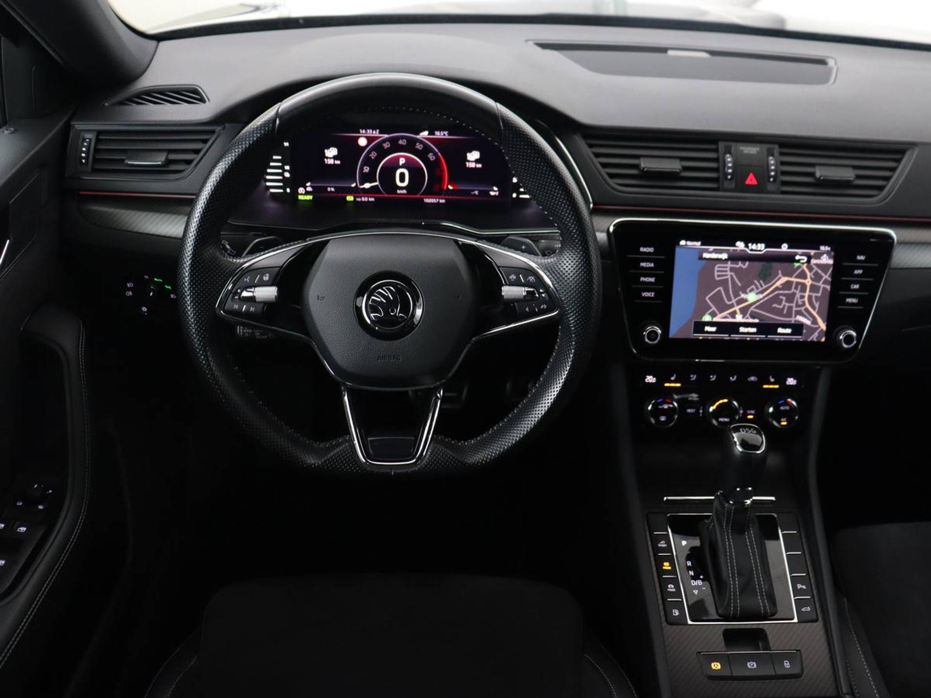 Alle ritinformatie en communicatie is gebundeld in één overzichtelijk digitale dashboard. Kinderfietsje niet gezien bij het inparkeren? Dat gebeurt u nooit meer. Daar zorgt de achteruitrijcamera wel voor! Adaptive cruise control is een comfortabele en veilige optie. Het systeem reguleert de snelheid en houdt automatisch afstand tot uw voorligger. Deze Skoda Superb is voorzien van remote services. Via uw smartphone bedient u diverse functies ook op afstand en krijgt u informatie over de status van uw auto. Het audio-installatiesysteem met DAB-ontvangst en het navigatiesysteem met harde schijf bedient u veilig met knoppen op het stuurwiel of met gesproken commando's. Extra opties op deze auto zijn: achteropkomend verkeer waarschuwing, automatische airconditioning, draadloos opladen, regensensor, keyless entry en automatisch dimmende buitenspiegels.