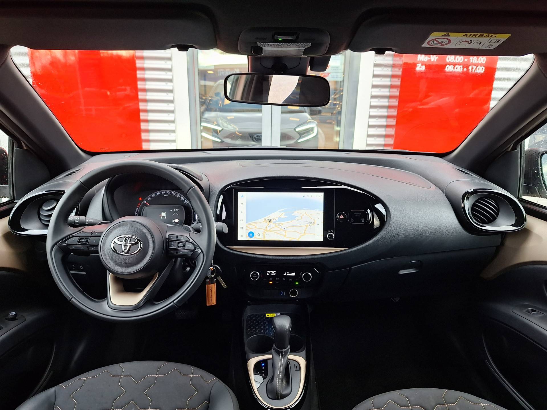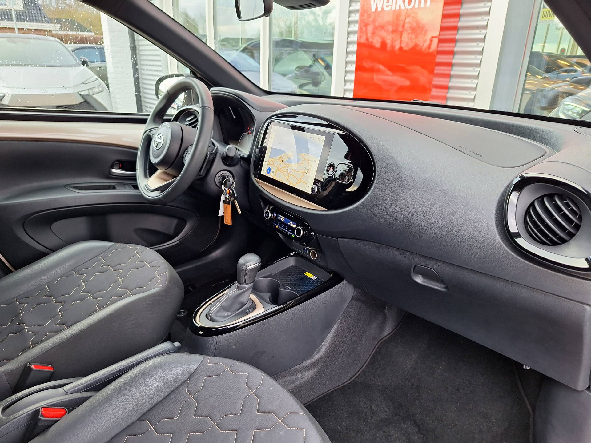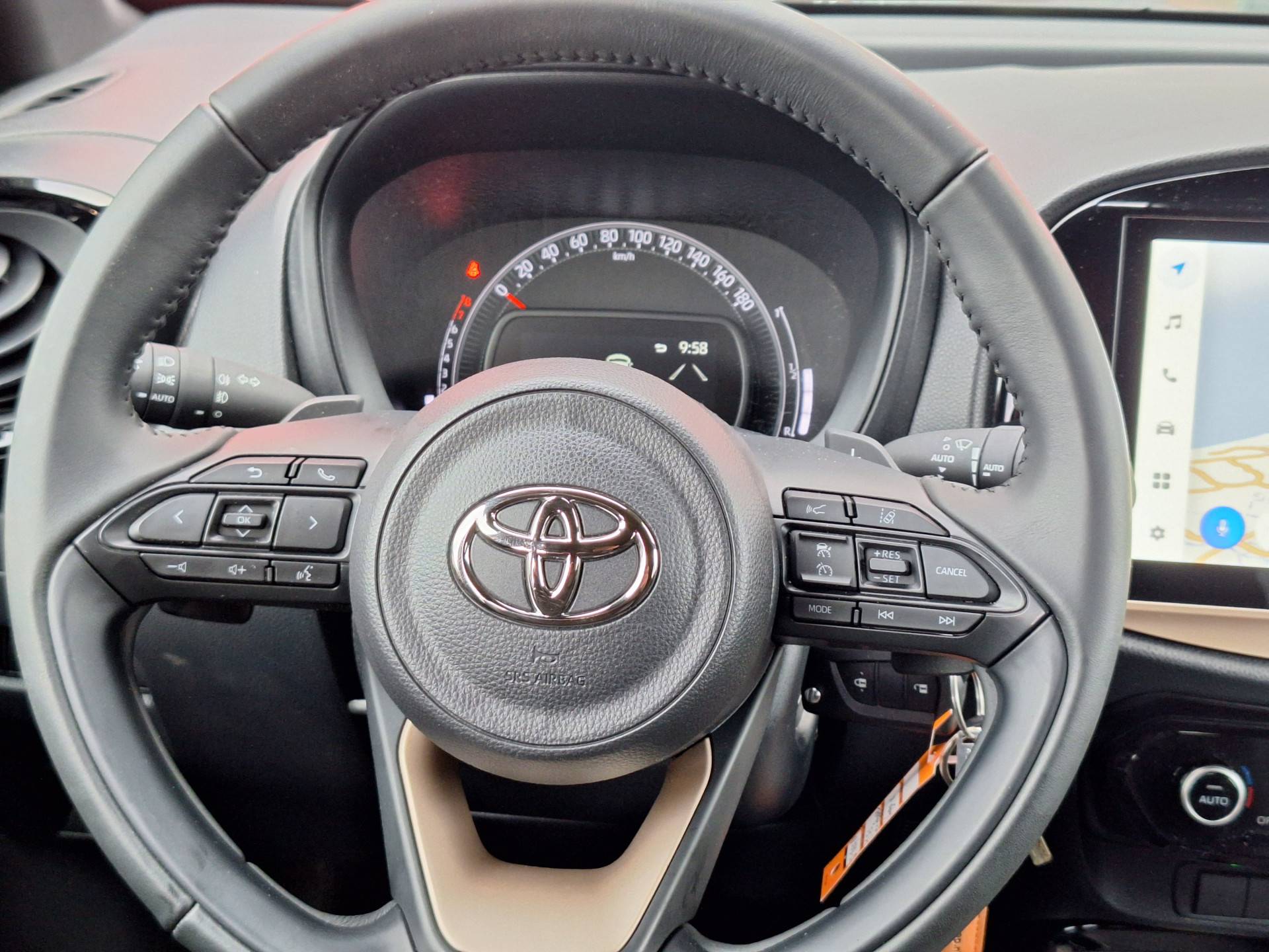 Boem is ho? Dat is verleden tijd. De achteruitrijcamera laat precies zien hoeveel ruimte u achter nog heeft! Adaptive cruise control is een comfortabele en veilige optie. Het systeem reguleert de snelheid en houdt automatisch afstand tot uw voorligger. Mocht zich een probleem voordoen, dan krijgt u via remote services op uw smartphone te zien wat er precies aan de hand is, waar u ook bent. Van A naar B zonder omwegen: altijd uw eigen full map navigatiesysteem aan boord! Omdat u nu eenmaal niet overal ogen heeft, is deze Toyota Aygo X voorzien van een achteropkomend verkeer waarschuwing die registreert wanneer de afstand tot uw achterligger te krap is. U bent in deze Toyota ook voorzien van automatische airconditioning, schakelpaddles aan het stuur, draadloos opladen, DAB ontvangst, regensensor en centrale deurvergrendeling met afstandsbediening.