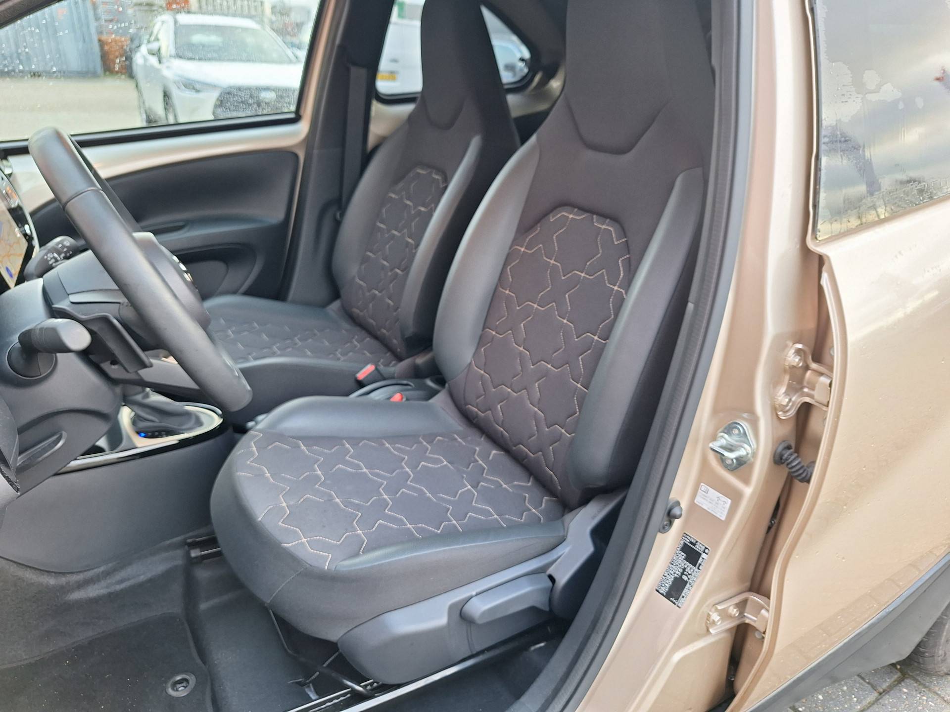 De Toyota Aygo X is ook voorzien van ADAS. Deze Advanced Driver Assistence Systems fungeren als extra ogen en oren: ze houden voor u de weg in de gaten en grijpen in wanneer dat nodig is. Bij de veiligheidssystemen van deze auto hoort ook de verkeersbord-detectie. Die leest tijdens het rijden als het ware met u mee en attendeert u op de significante verkeersborden langs en boven de weg. Het Lane-keeping systeem zorgt dat u mooi binnen de lijntjes blijft. Ongemerkt buiten de rijstrook komen is er niet meer bij. De forward collision warning reduceert het gevaar van een botsing met een voorligger significant. Verder is deze auto uitgerust met hill hold functie, brake assist en bandenspanningcontrolesysteem.