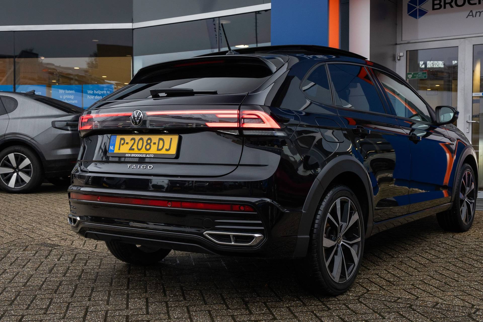 Met zijn veelzijdigheid biedt deze Volkswagen Taigo u talloze mogelijkheden. Want hij is krachtig en robuust, maar tegelijk biedt hij een ruim en comfortabel interieur. Zijn veiligheidsvoorzieningen zijn uitstekend, maar niettemin biedt hij ook geweldige rijeigenschappen. Met de sportieve R-Line styling is deze Volkswagen Taigo een lust voor het oog. Het zijn de degelijkheid van de constructie en de doordachtheid van het ontwerp die ervoor zorgen dat een Volkswagen jarenlang begeerlijk blijft. Zoals deze Taigo, bijvoorbeeld. Met zijn benzinemotor en automatische transmissie is dit een prima auto voor nog vele kilometers. Lekker hoor, die verwarmbare voorstoelen. Helemaal op koude dagen. Chauffeur en bijrijder zitten stabiel in de scherpe bochten door de comfort sportstoelen. Volop licht en ruimtelijk gevoel geeft het elektrische bediende glazen panoramadak. De koplampen met matrix LED-verlichting zijn het hoogst haalbare op het gebied van autoverlichting. Bij de rijke uitrusting horen ook 18 inch lichtmetalen velgen, geluidsisolerende ramen, in delen neerklapbare achterbank, LED-achterlichten en verstelbare lendensteunen. Het personaliseren van uw cockpitinterface is mogelijk met het digitale dashboard in deze auto. De achteruitrijcamera vergemakkelijkt achteruit inparkeren. U ziet duidelijk wat er achter de auto gebeurt. Adaptive cruise control is een comfortabele en veilige optie. Het systeem reguleert de snelheid en houdt automatisch afstand tot uw voorligger. In de file rijden vreet concentratie. Daarom komt de file assistent te hulp om veilig afstand te houden en automatisch te stoppen als uw voorligger stilstaat. Dankzij Connected Services houdt u de auto nog gemakkelijker in topconditie. Elke dag. En deze auto heeft ook navigatiesysteem, automatische airconditioning, sportstuur met schakelpaddels, DAB ontvangst, regensensor en keyless entry als standaard uitrusting. De intelligente veiligheidssystemen in deze auto waken continu over uw veiligheid. Het Lane-keeping systeem zorgt voor een automatisch constante positie binnen de rijstrook. Afdwalen is uitgesloten. Mindert een voorligger onverwachts te veel vaart, dan komt de forward collision warning in actie en waarschuwt meteen. Op lange ritten voorkomt de vermoeidheidsassistent dat uw concentratie afneemt. U bent mede dankzij dodehoekdetectie, hill hold functie, frontale botsbescherming en bandenspanningcontrolesysteem steeds veilig onderweg. Natuurlijk kunt u de kwaliteiten van deze auto pas echt beoordelen na een proefrit. Neem nu contact met ons op, dan zetten wij hem voor u klaar.