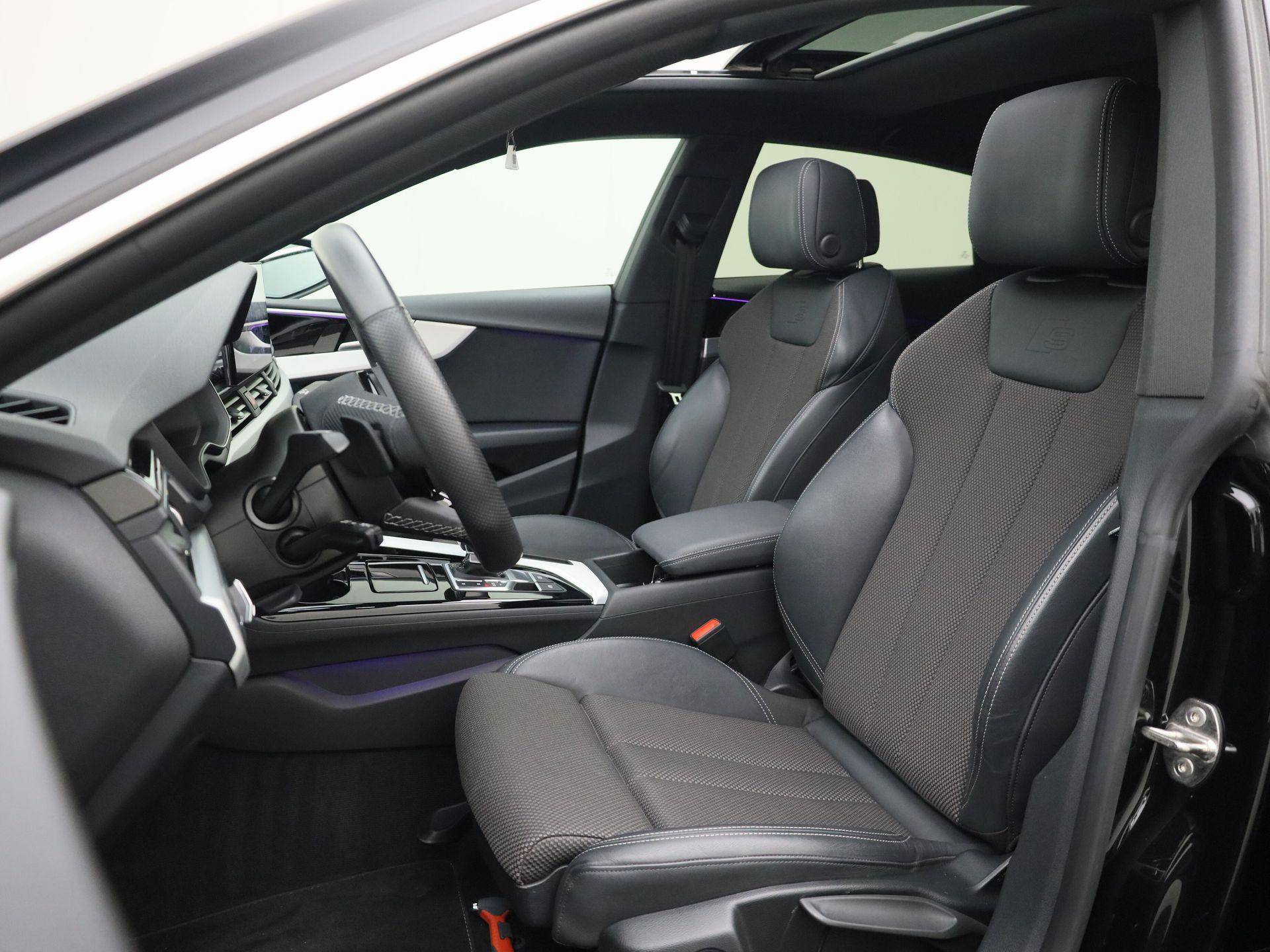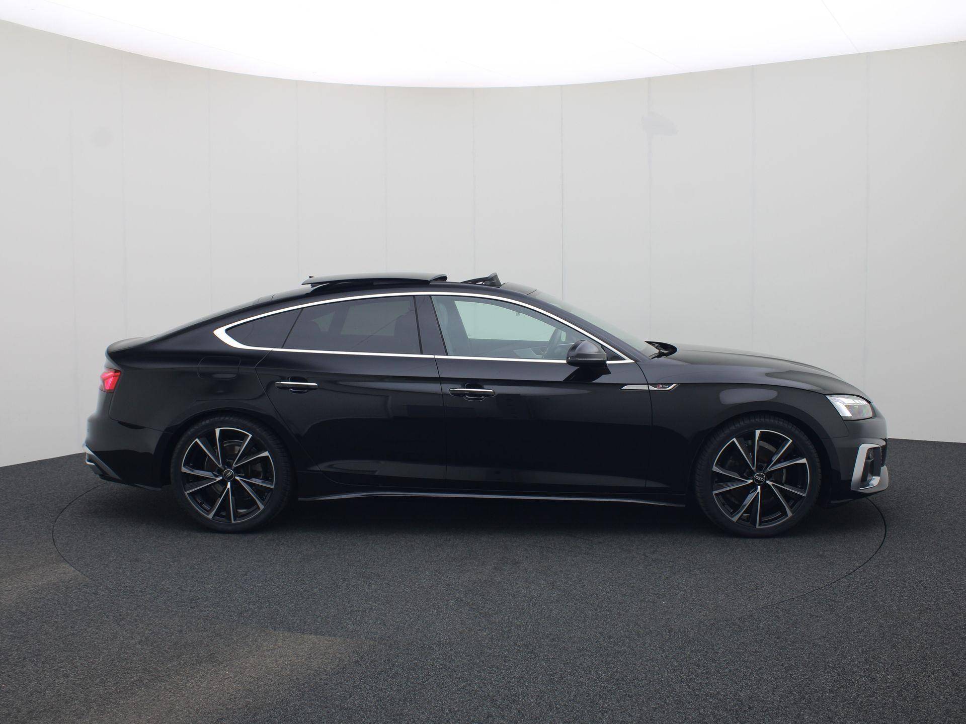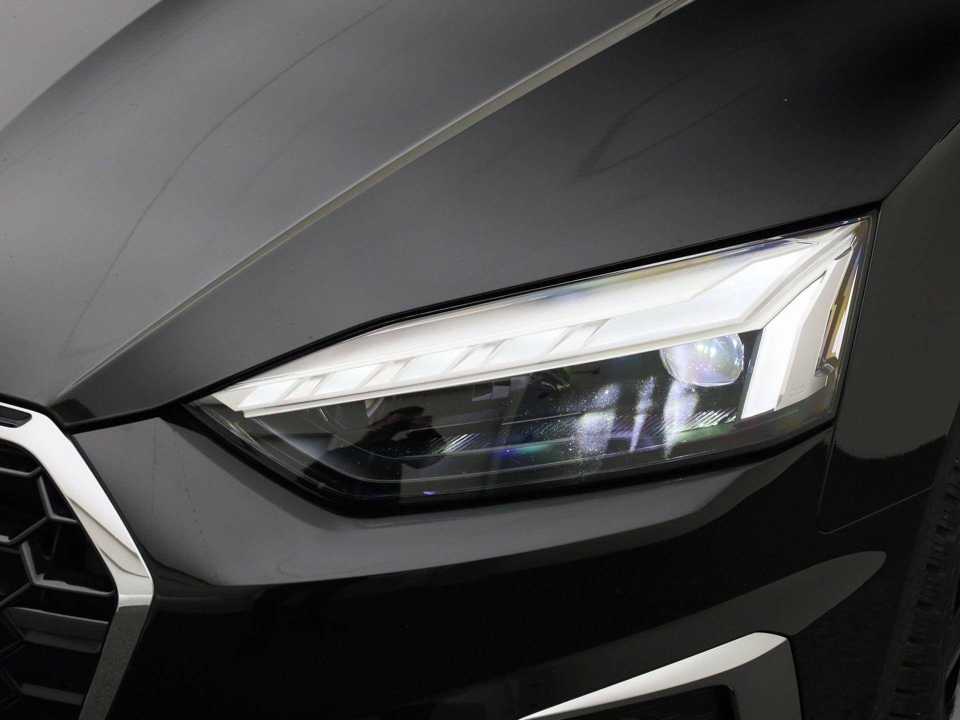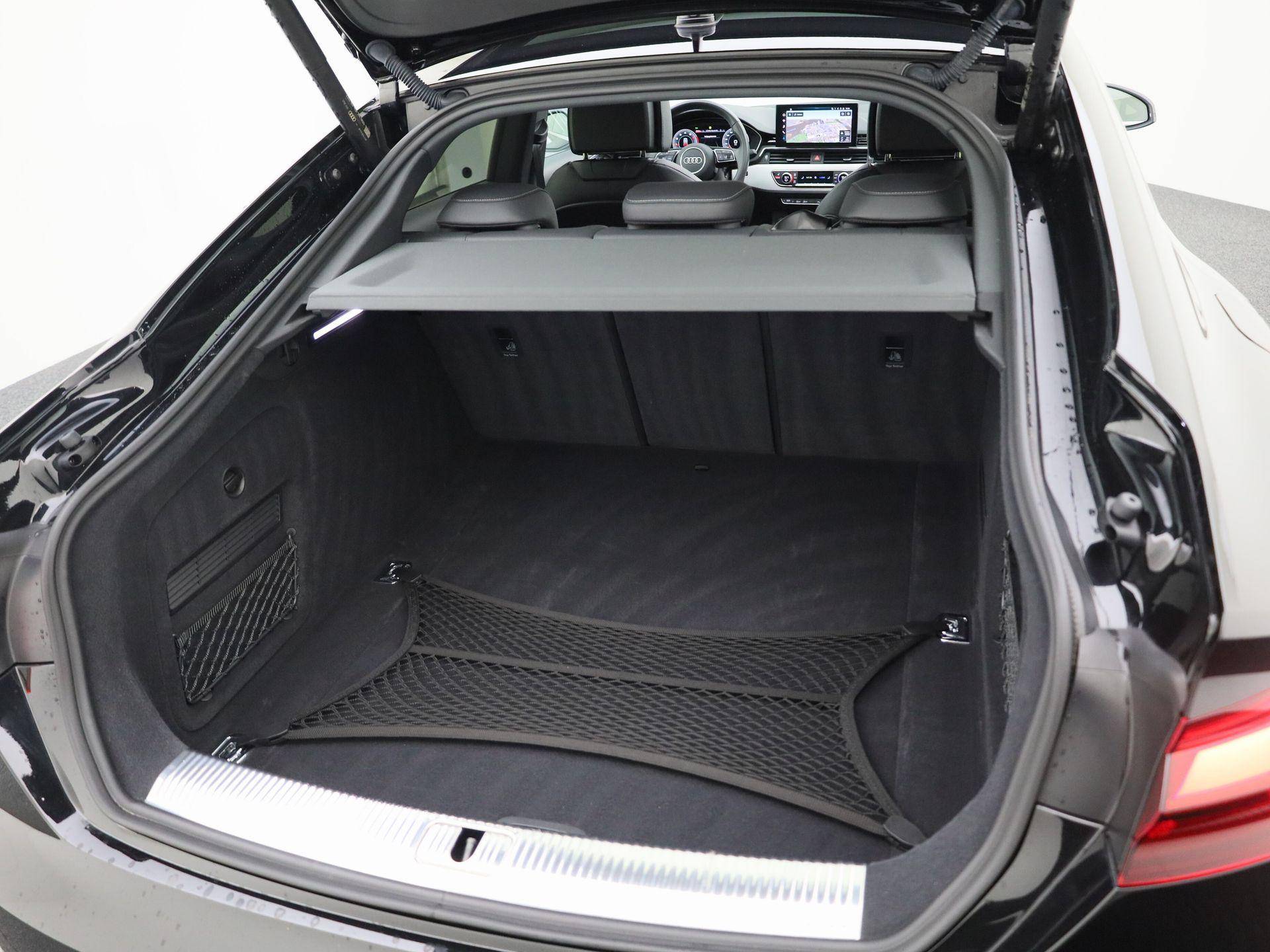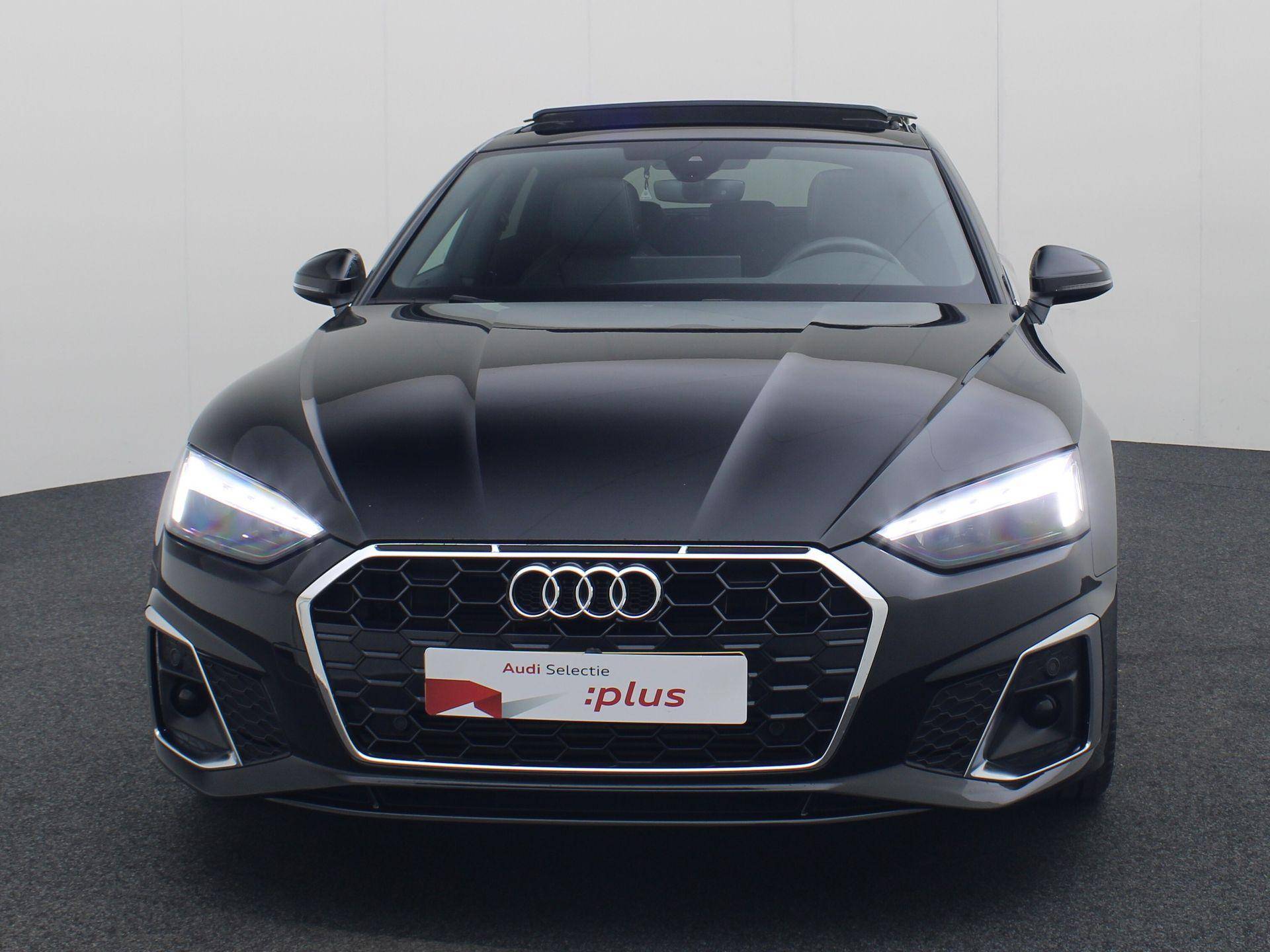 Rijden als nieuw? Dan is deze Audi A5 Sportback een fantastische buitenkans. Prille cijfers op de teller, piepjong ogend, verbluffend actueel in extra's en opties... Deze Audi A5 Sportback heeft het allemaal! Het S-Line styling pakket maakt direct duidelijk waar deze Audi voor staat: onversneden sportiviteit en rijdynamiek. De aandrijving komt voor rekening van een benzinemotor en een automatische transmissie. Inladen is een eitje met de elektrisch bedienbare achterklep. En voor een frisse wind tijdens de rit is er het elektrisch bediende glazen panorama dak. Op koude dagen voelt u zich snel behaaglijk op de verwarmbare stoelen. Vergeet halogeen; deze koplampen gebruiken de allernieuwste matrix LED-technologie met maximale lichtopbrengst zonder de tegenligger te hinderen. Bij de rijke uitrusting horen ook 19 inch lichtmetalen velgen, sportonderstel, adaptief dempingsysteem, warmtewerend glas, in delen neerklapbare achterbank en LED-achterlichten.