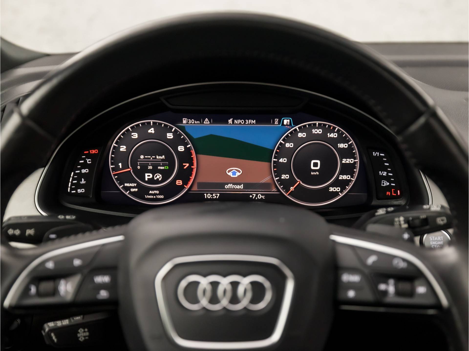 Pragmatisch en veilig als deze auto is, beschikt hij over diverse veiligheidssystemen. Verkeersborddetectie herkent tijdelijke en permanente verkeersborden langs en boven de weg. Soepel wegrijden op een helling is eenvoudig met de hulp van hill hold control. In deze Audi vinden we verder een head-up display, dodehoekdetectie, autonoom remsysteem en bandenspanningcontrolesysteem.