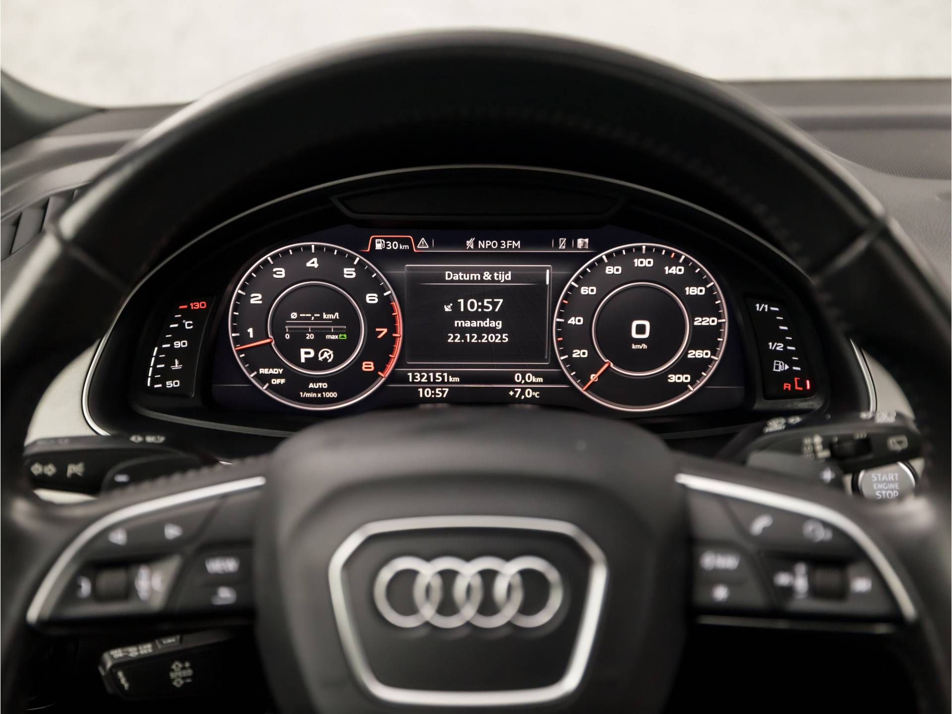 ✓ Sportstuurwiel, driespaaks multifunctioneel in leder met schakelpaddels