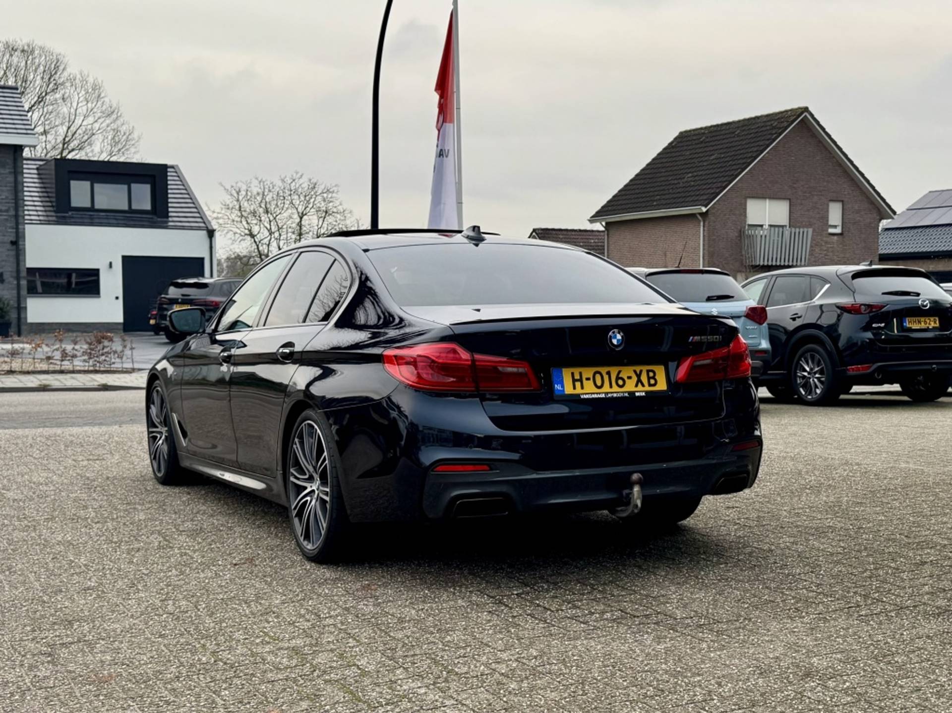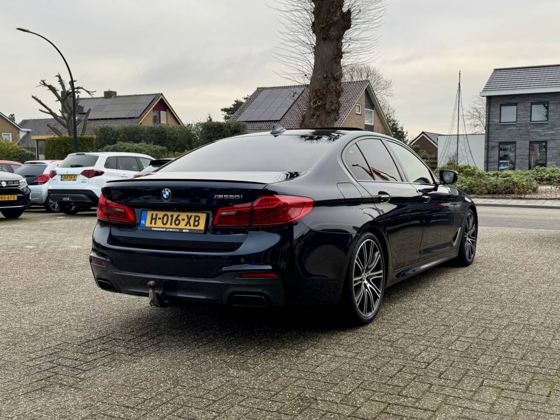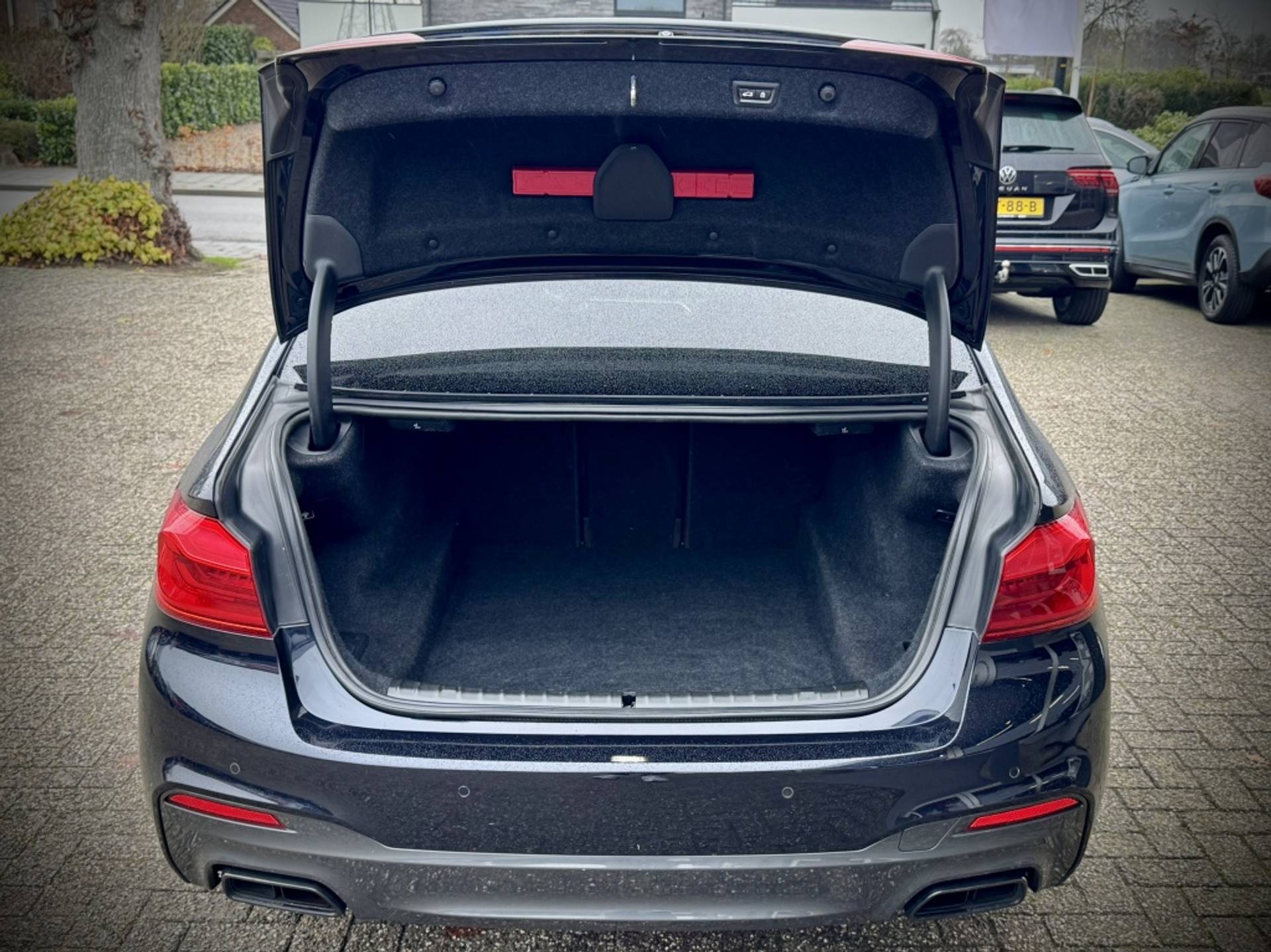 In schitterende staat verkerende, BMW dealer onderhouden en zeer compleet uitgeruste M550i in Carbon Black Metallic. Alle technologie in de Bmw 5-serie is er op gericht om jouw rit veilig en gemakkelijk te laten verlopen. Dit mooie exemplaar komt uit 2017. De automatische transmissie en de achtcilinder motor maken het autorijden snel en comfortabel. Ontdek de fantastische prestaties van vierwielaandrijving met deze 4x4! Verwen jezelf met het lederen interieur in deze auto. Behaaglijk onderweg zijn? Als bestuurder geniet je van de verwarmbare voorstoelen met massagefunctie. Net als je bijrijder! De sportstoelen geven het interieur van deze 5-serie een super strakke en sportieve uitstraling. Als je blij wordt van licht en ruimte dan zul je zeker genieten van het elektrisch bediende panoramadak. Een praktische extra is de elektrisch bedienbare achterklep die opent en sluit met een druk op de knop. Bij de rijke uitrusting horen ook 20 inch lichtmetalen velgen, LED koplampen, sportonderstel, adaptief dempingsysteem, donker getint glas achter en in delen neerklapbare achterbank.