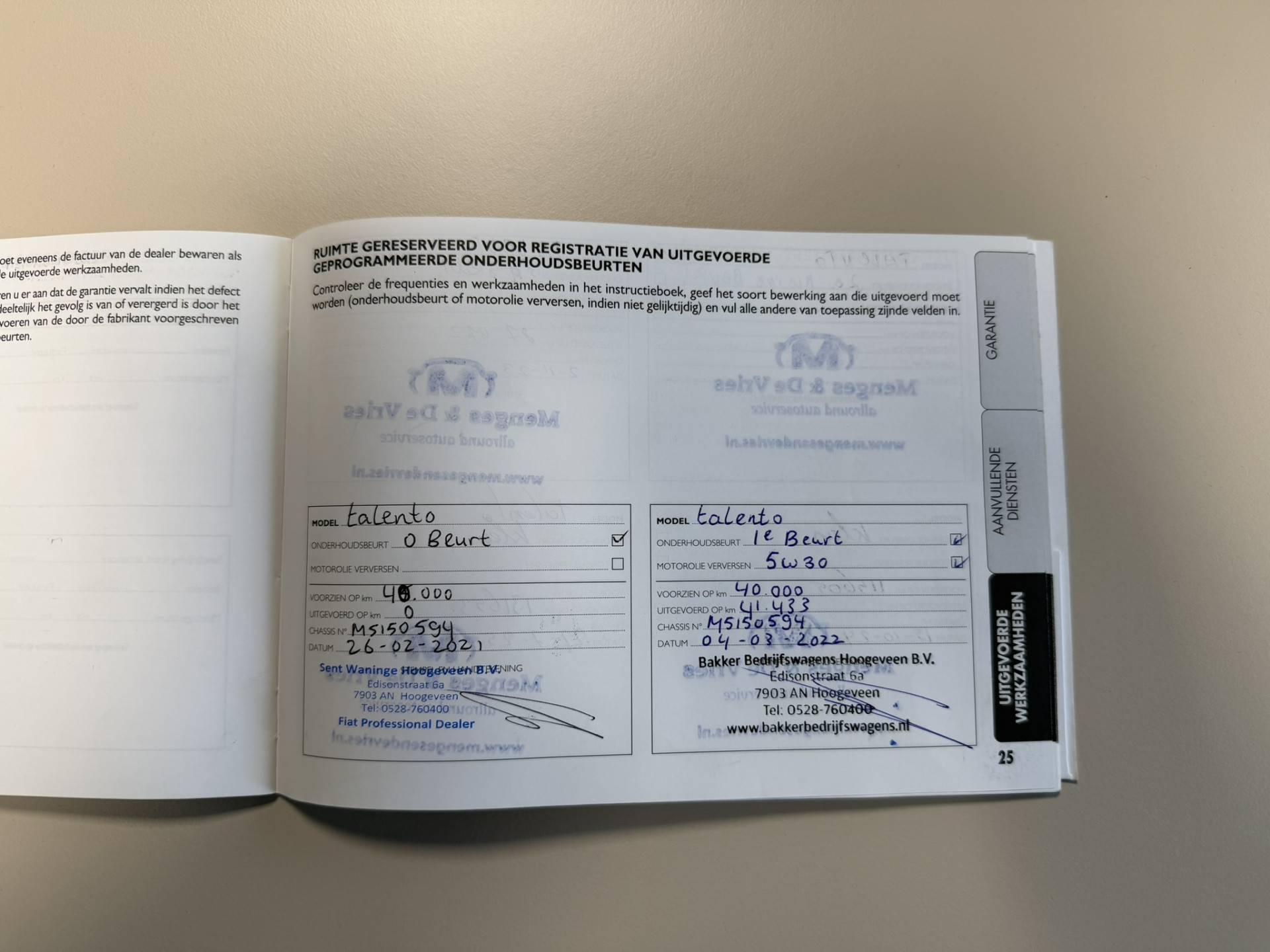 Bij deze Fiat Talento zijn 2 originele sleutels aanwezig en is voorzien van onderhoudsboekje. Tegen meerprijs is deze occasion af te leveren met nieuwe APK, onderhoudsbeurt ( indien nodig ) en 6 maanden BOVAG garantie, meerprijs €1195,-