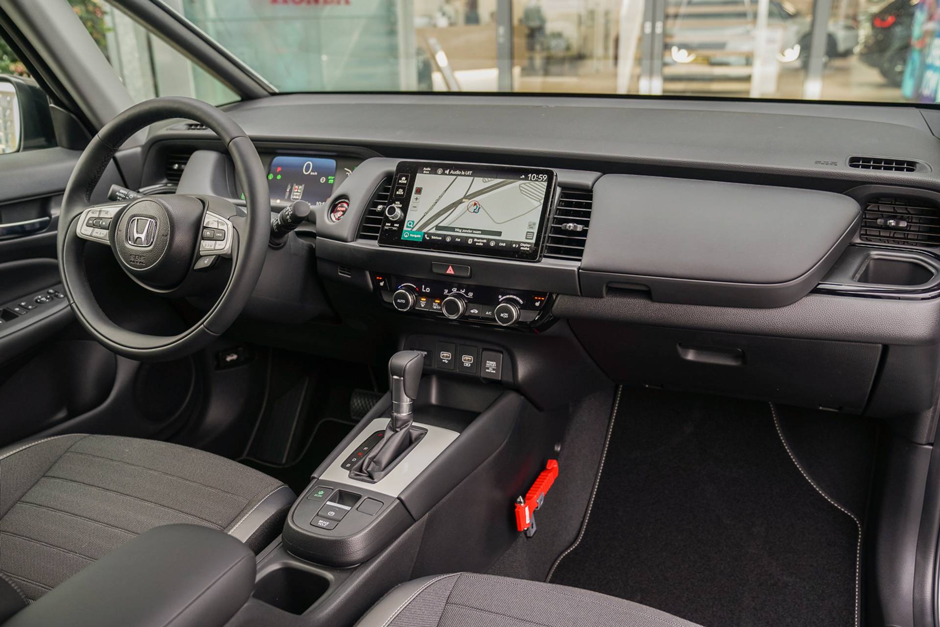 Demonstratie model; Splinternieuwe Jazz 1.5i HYBRID CROSSTAR Advance!! Deze Jazz Crosstar Advance inclusief de nieuwe 122 PK motor, Honda Connect, Garmin Navigatie, Parkeersensoren voor en achter, Adaptieve cruise controle, Rijstrookassistentie, Bluetooth carkit, Climate control, Achteruitrijcamera met parkeerhulp, LED verlichting rondom, Half lederen interieur, Dakrailing, Privacy Glass af B-Style, Verkeersbordenherkenning, Stoelverwarming, Automatische ruitenwissers, Automatische verlichting met High Beam Support, Automatisch sturen en CarPlay voor Android of Apple. Met deze Jazz 5 deurs Crosstar kunt u direct wegrijden; Prijs €. 30.750,- VOLLEDIG RIJKLAAR inclusief metallic lak (Crystal Black Pearl Metallic). Wij leveren onder vaste en uiterst scherpe prijscondities (prijs reeds onder verrekening van alle kortingen). Profiteer ook van Honda Insurance, waarbij u zorgeloos geniet van 10 jaar volledige (fabriek) garantie gecombineerd met gratis haal en brengservice (door heel Nederland) bij onderhoud en/of reparatie inclusief 10 jaar Honda Assistance. Het betreft hier een demonstratie model, informeer daarom naar de actuele kilometerstand.