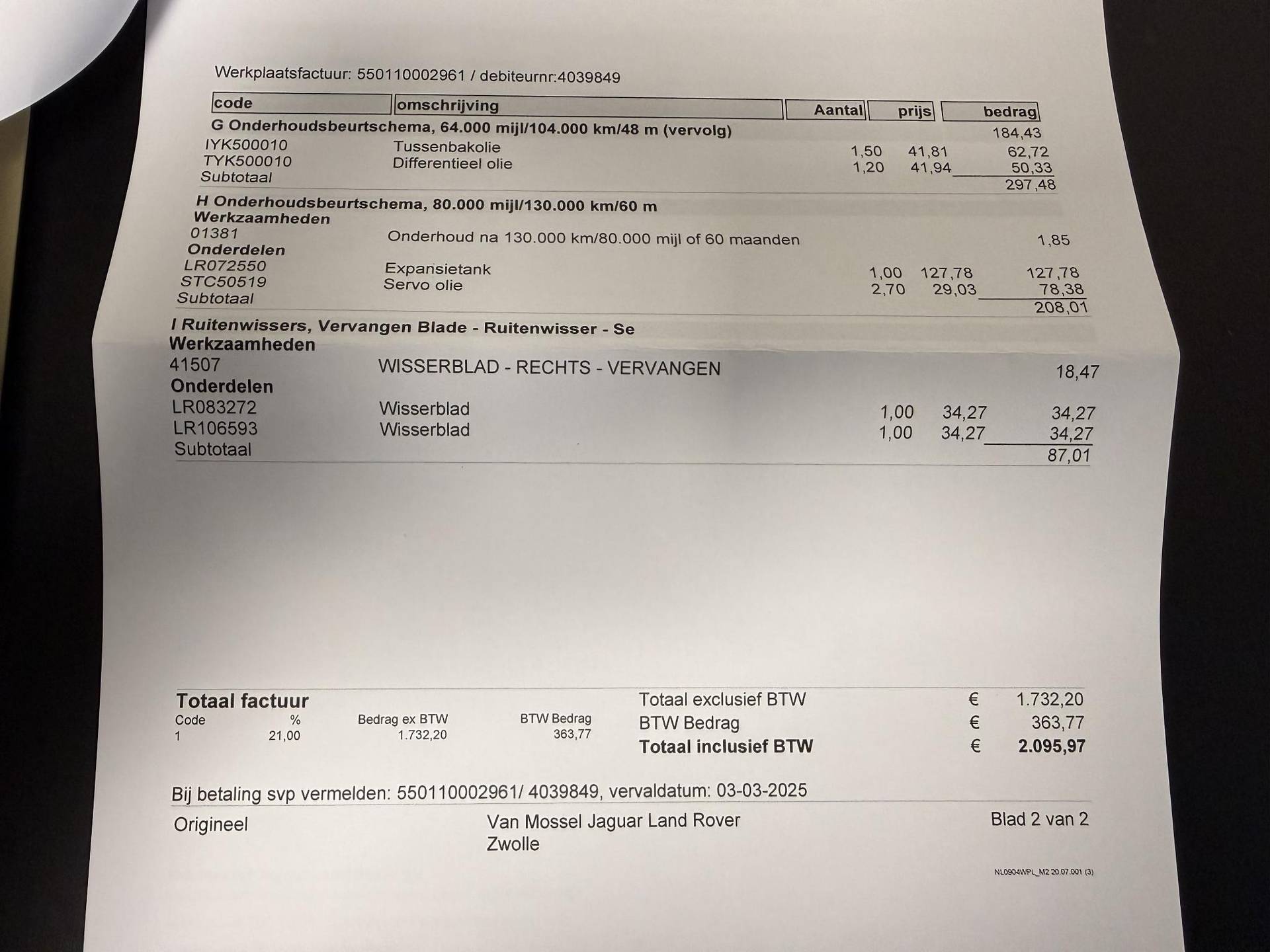 ✓ APK bij aflevering: N