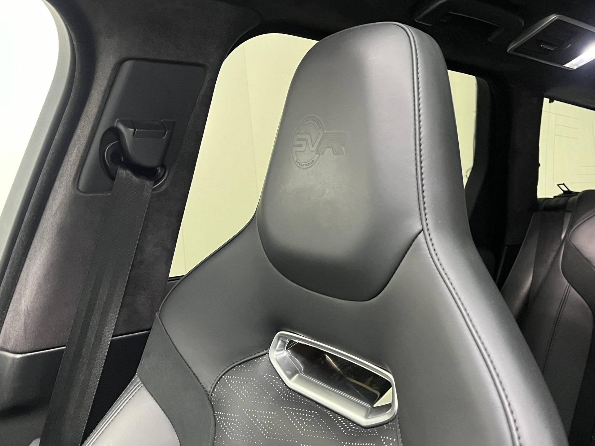 Het exterieur is een toonbeeld van kracht en elegantie. De Carbon Edition voegt lichtgewicht carbon fiber elementen toe op strategische plaatsen, zoals de motorkap, spiegelkappen, luchtinlaten en diverse sierdelen. Deze combinatie van carbon en krachtige stylingdetails geeft de SVR een nog agressiever profiel en een uitstraling die direct respect afdwingt. De brede houding, gespierde lijnen en het kenmerkende SVR-front vormen samen een SUV die pure dominantie uitstraalt.