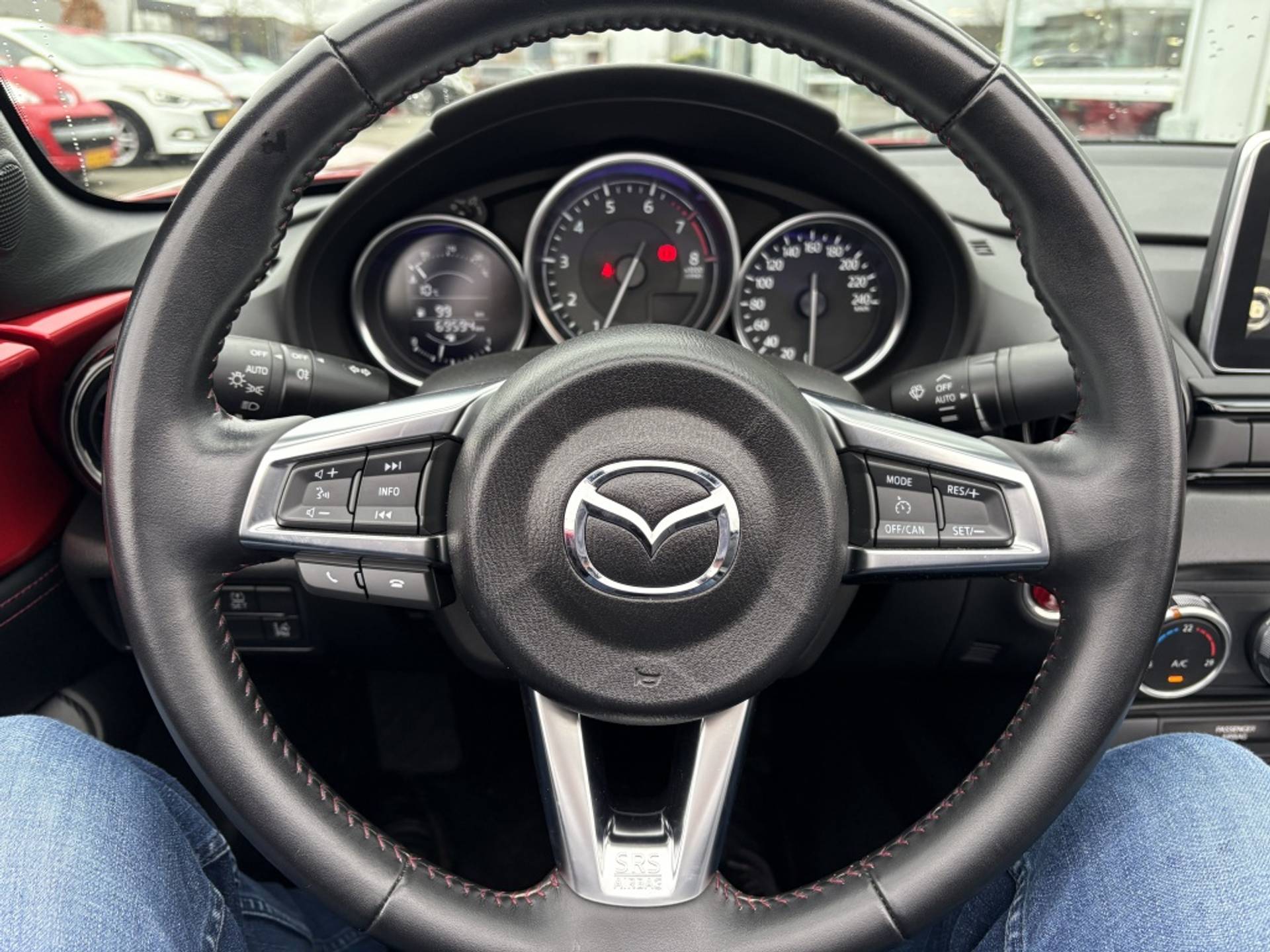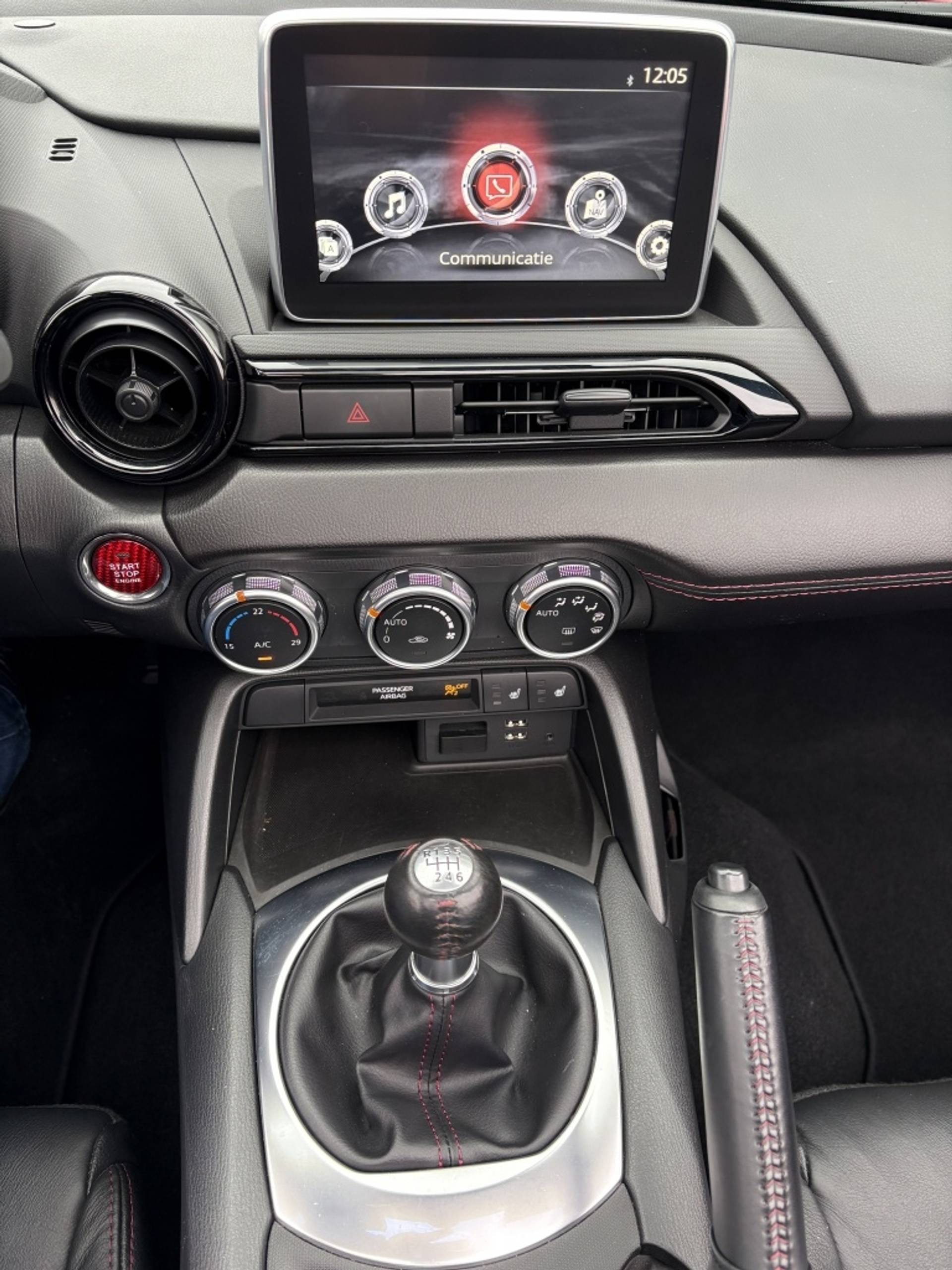 Deze Mazda MX-5 is een Exclusive Line uitvoering en is het 3e niveau van de destijds in totaal 4 verschillende luxe varianten. Deze versie is o.a. voorzien van: Interieurbekleding zwart leder met rood stiksel, Interieurelementen zwart kunstleder met rood stiksel, Lane Departure Warning (LDW): waarschuwing bij onbedoeld verlaten van de rijbaan, Climate control, Licht- en regensensor, Automatisch dimmende binnenspiegel, Verwarmbare stoelen en DAB+: Digital Radio+ ontvanger (incl. FM/AM). Daarnaast is deze auto voorzien van een fabrieks navigatie systeem. De mogelijkheid tot uitbreiding met Apple Car play/Android is nog steeds mogelijk. Naast de fabrieksuitrusting is deze MX-5 nog voorzien van een verlagingsset, 18"lichtmetalen velgen en een achterspoilerlip. De complete onderhoudshistorie is geregistreerd in het Mazda Digitaal service register en is ter inzage beschikbaar.