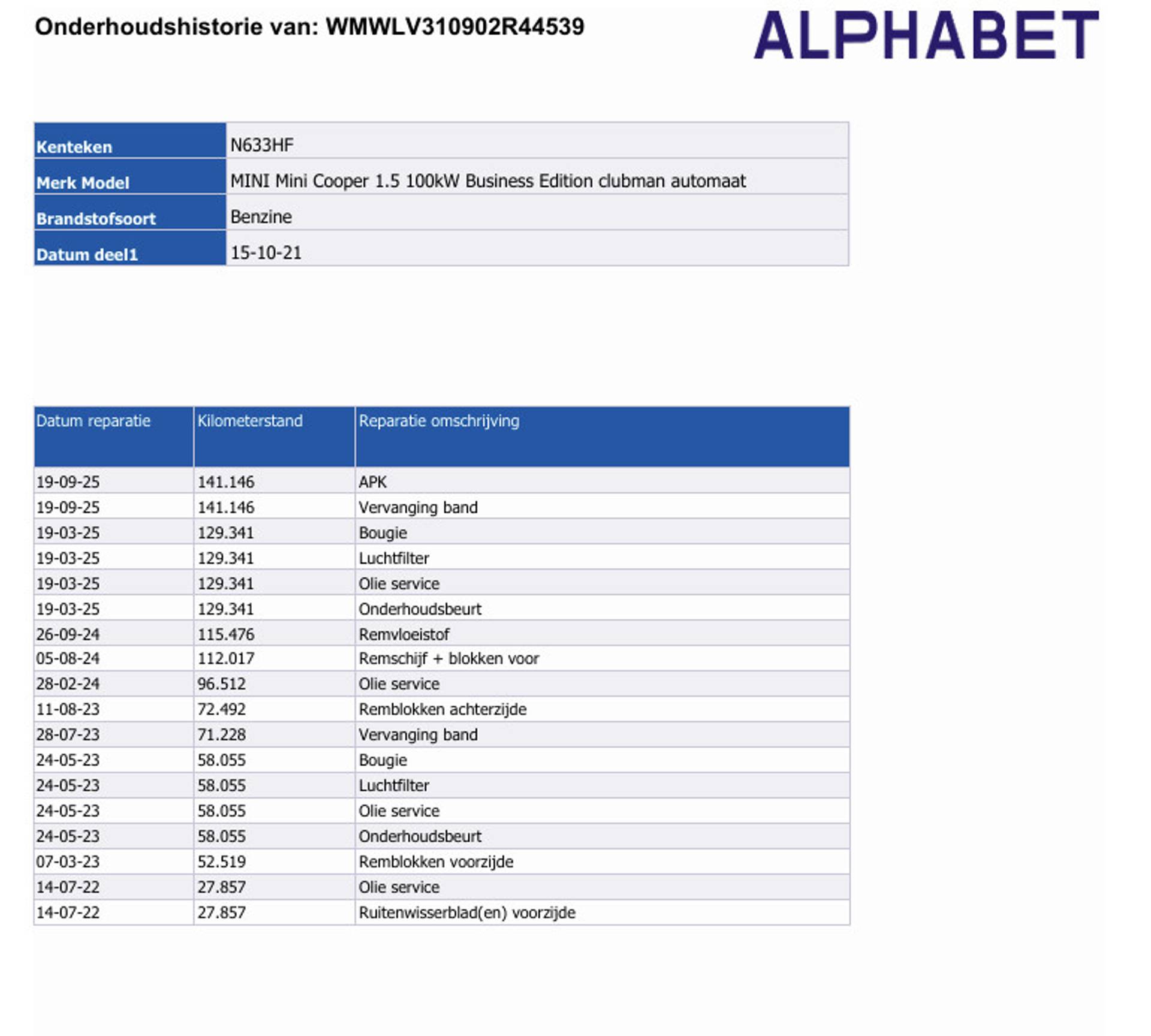 ✓ Onderhoudsboekje (digitaal)