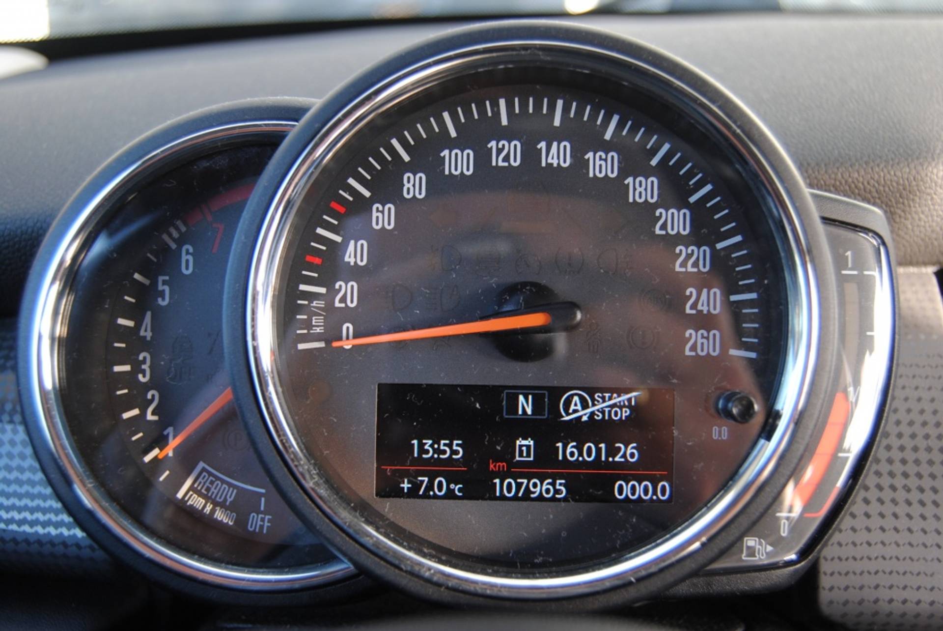 Pragmatisch en veilig als deze auto is, beschikt hij over diverse veiligheidssystemen. De brake assist zorgt voor een kortere remweg tijdens een noodstop. In deze Mini vinden we verder een hill hold functie en bandenspanningcontrolesysteem.