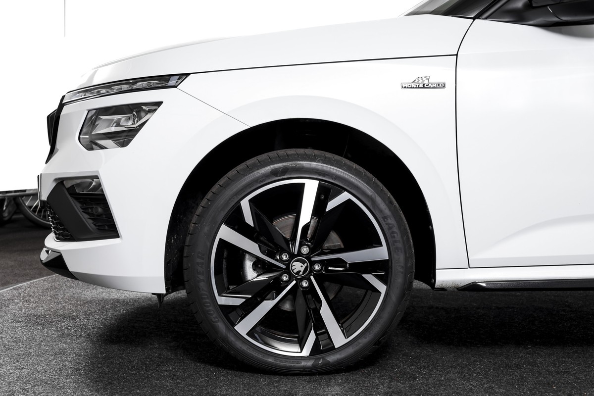Deze ŠKODA Kamiq Monte Carlo is uitgevoerd met de 1.5 TSI motor met 150 pk en automatische transmissie, een aandrijflijn die in Nederland niet leverbaar is, en al helemaal niet in combinatie met de Monte Carlo uitvoering. Dat maakt deze auto uniek. Met een bouwjaar 2025 en slechts 3.154 kilometer is de auto feitelijk nog nieuw.